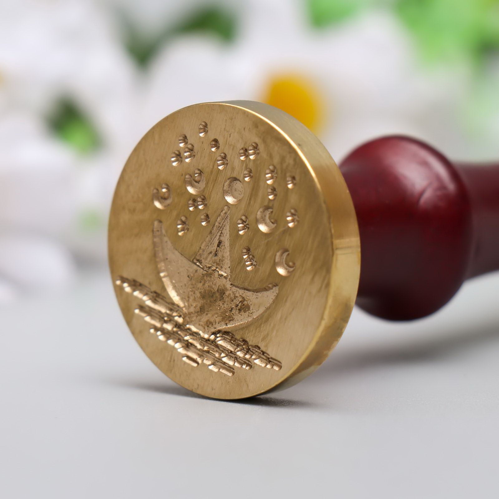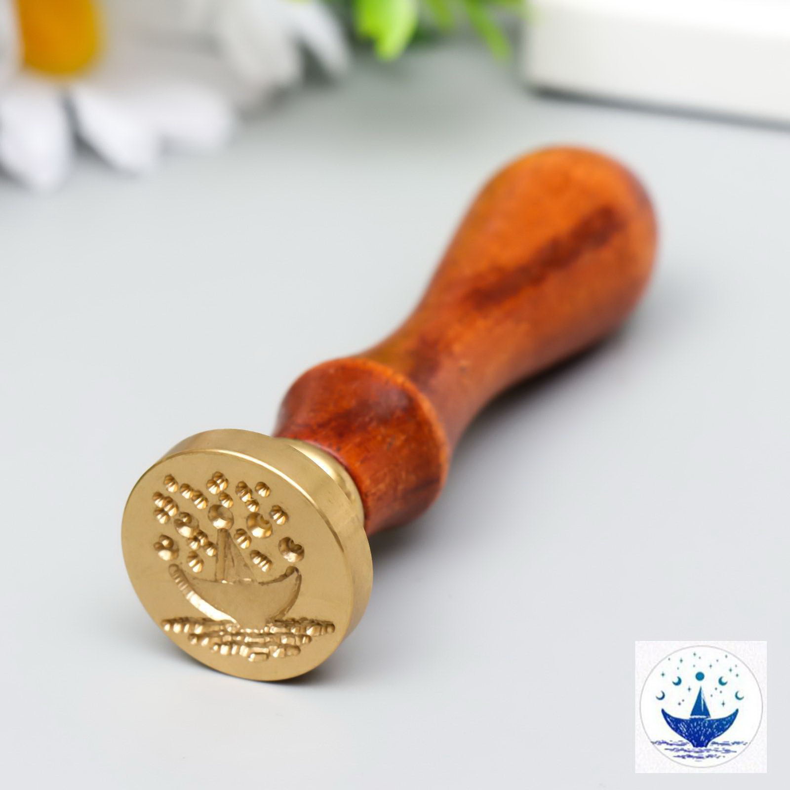 Печать для сургуча с деревянной ручкой "Парусник на хвосте у кита" 9х3х3 см, 2.5x2.5x9 см., Китай