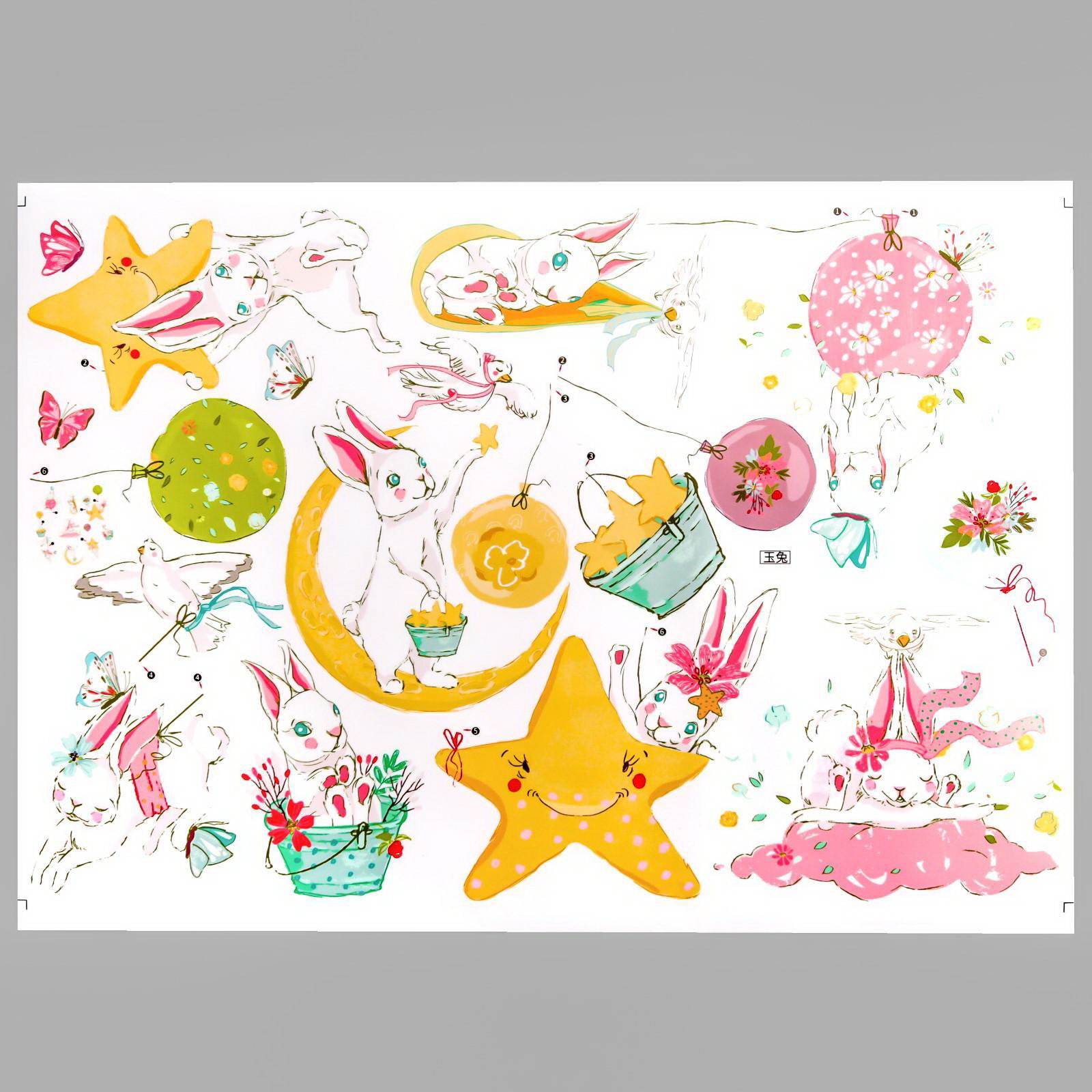Наклейка пластик интерьерная цветная "Зайки, воздушные шары и звёзды" 60х90 см, 90x60 см., Китай