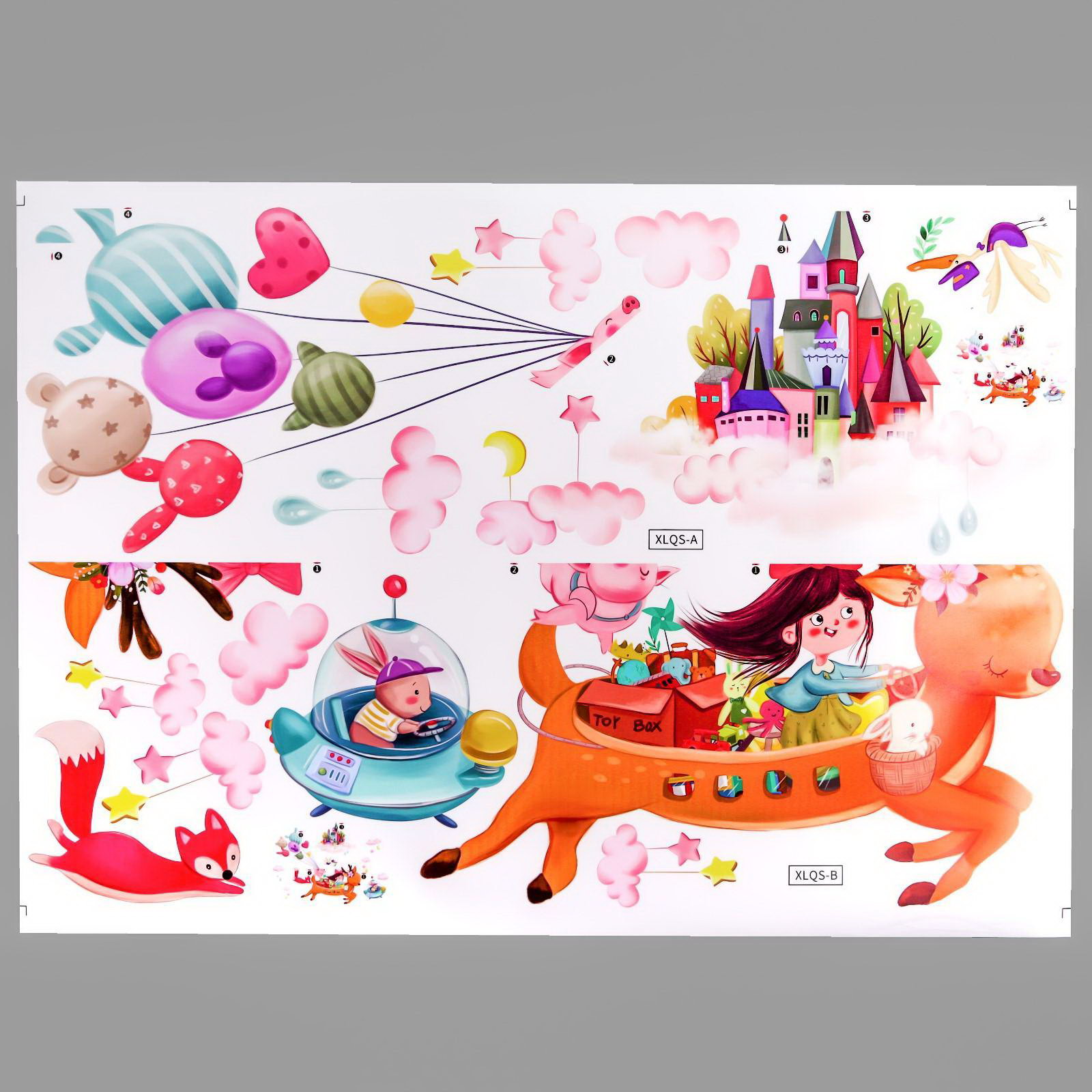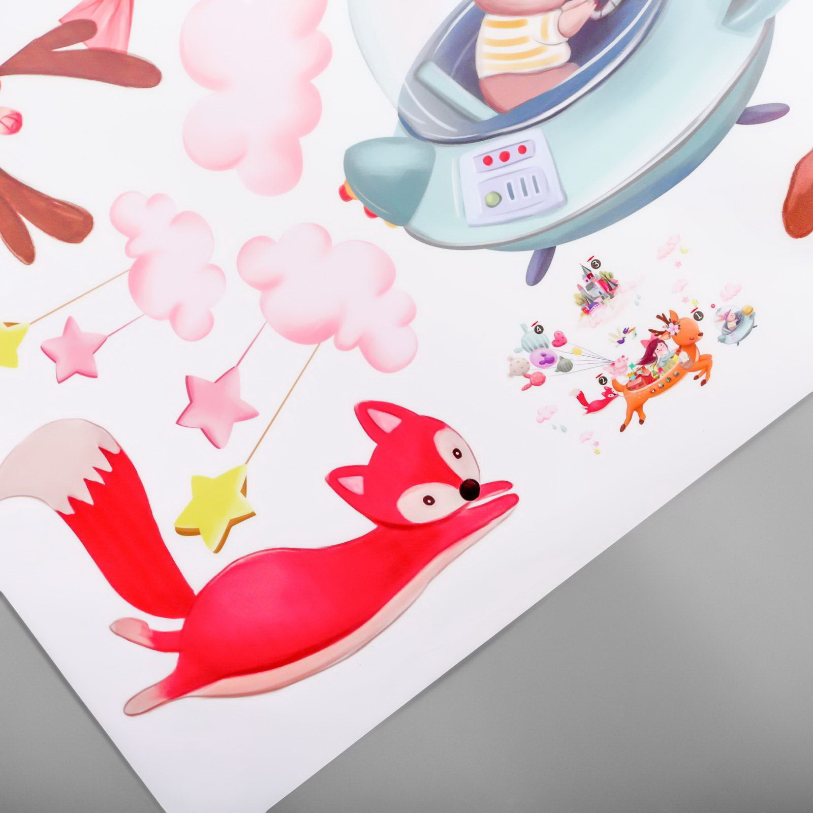 Наклейка пластик интерьерная цветная "Летающий олень со зверятами" 60х90 см, 90x30 см., Китай