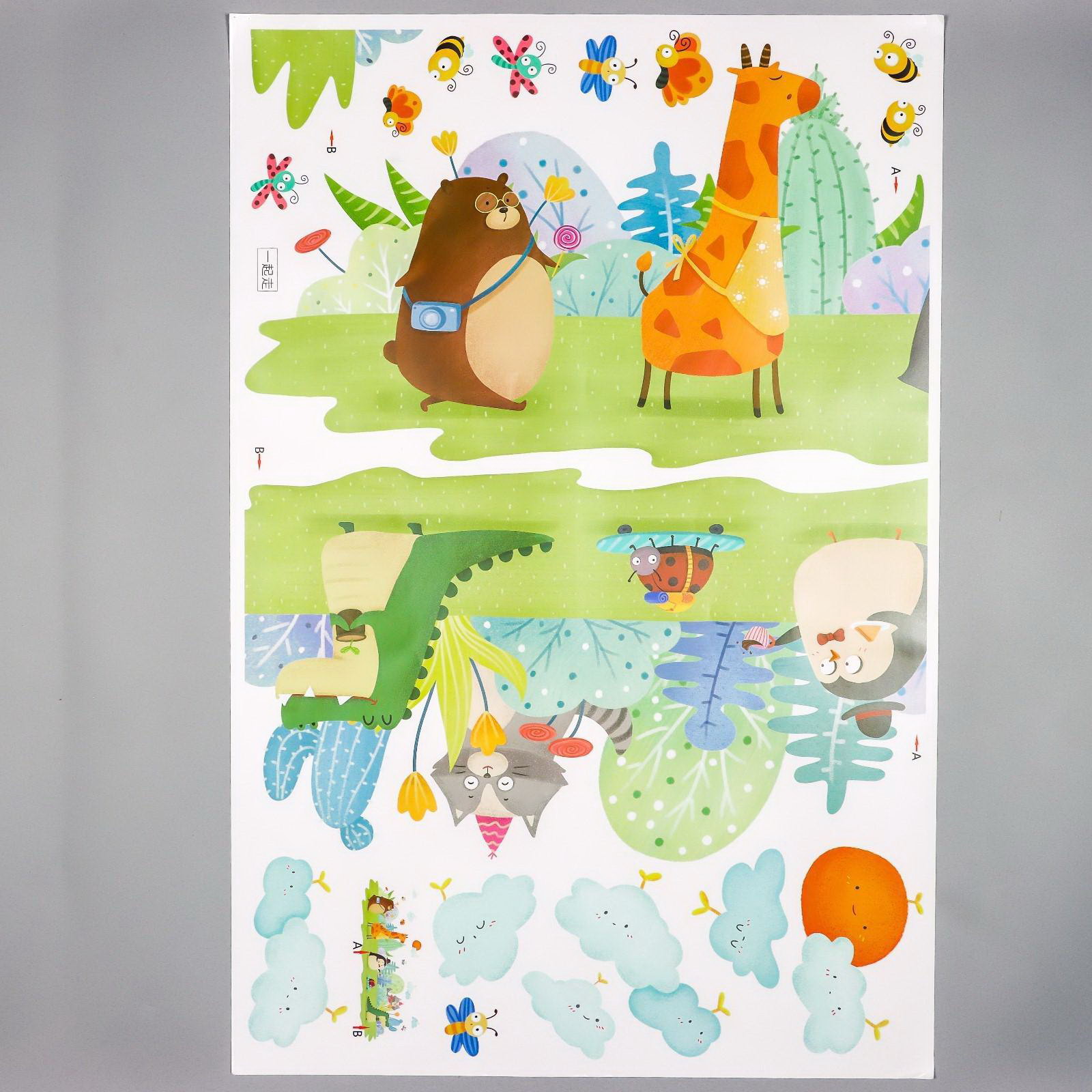 Наклейка пластик интерьерная цветная "Прогулка по лесу - зверята" 60х90 см, 90x60 см., Китай