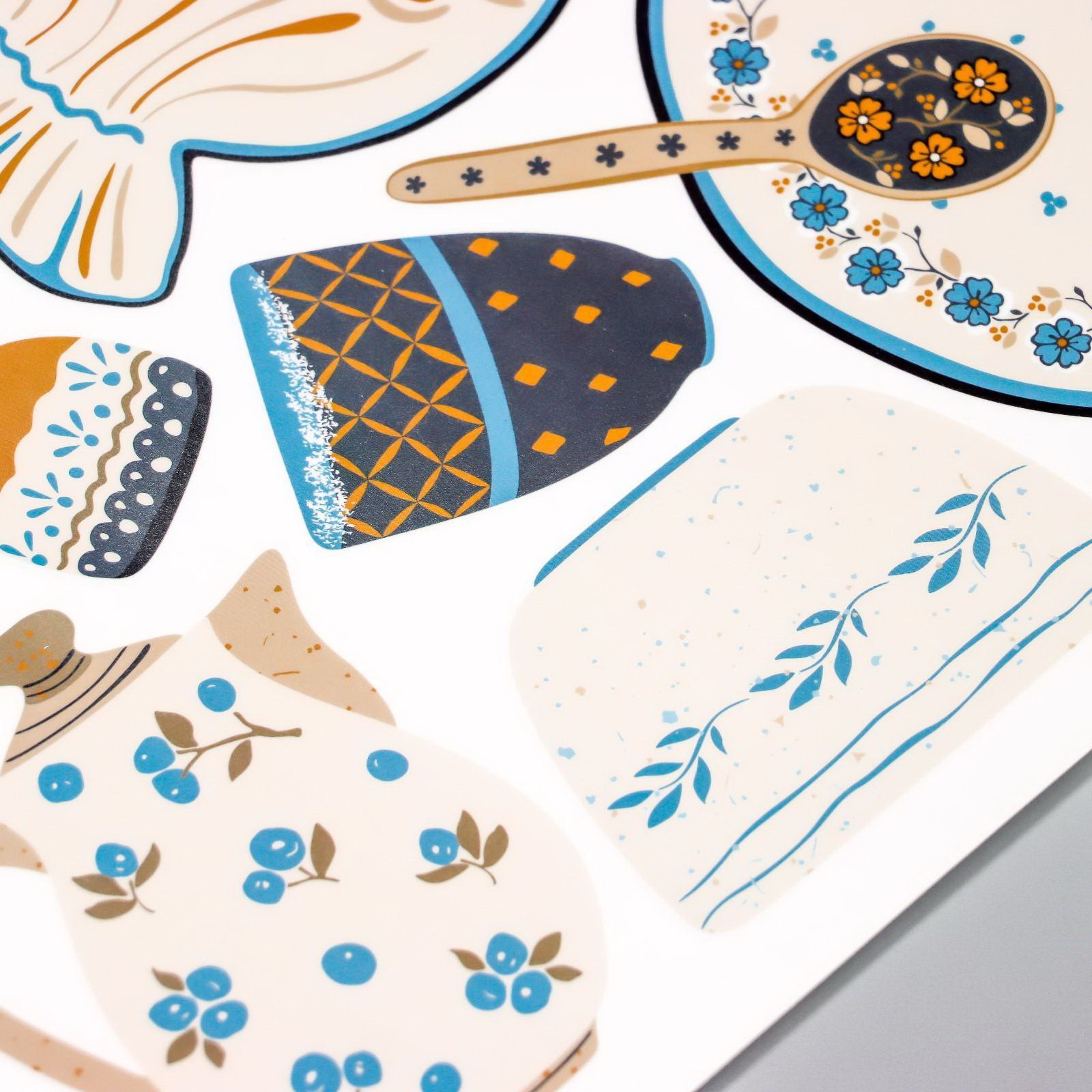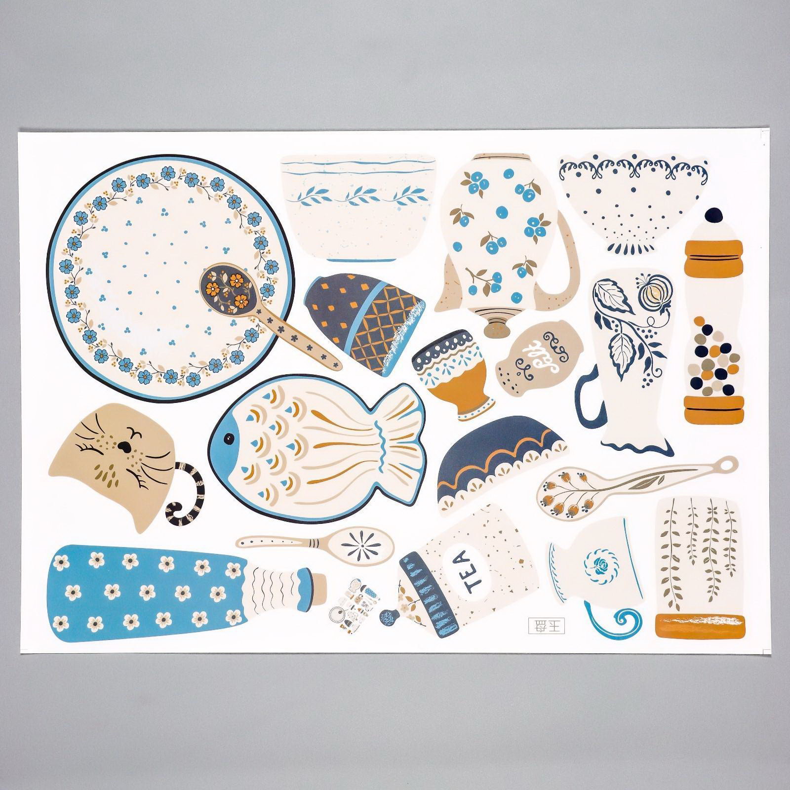 Наклейка пластик интерьерная цветная "Посуда в синих оттенках" 35х50 см, 50x35 см., Китай