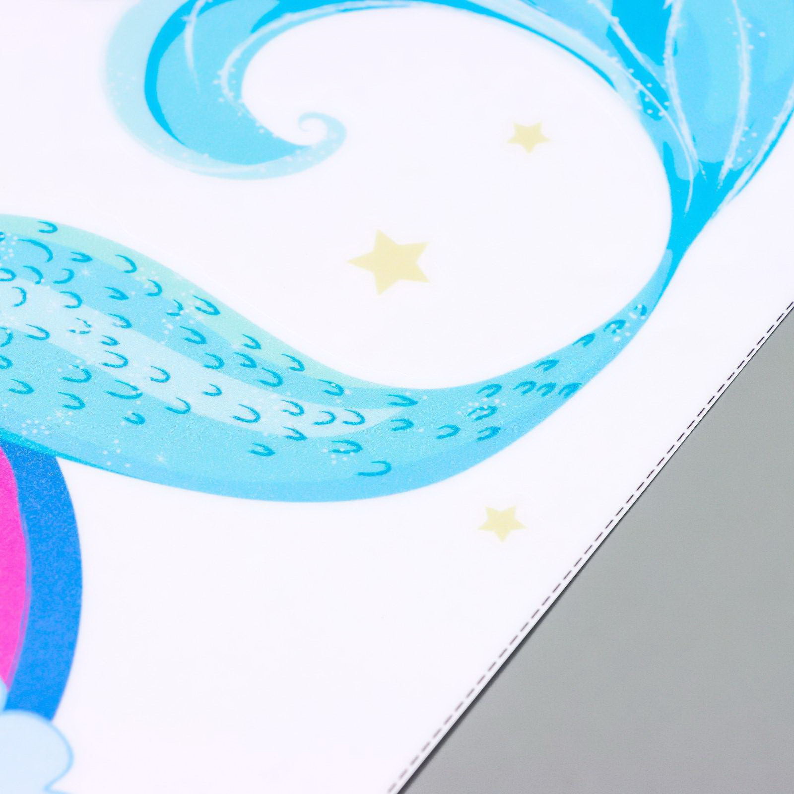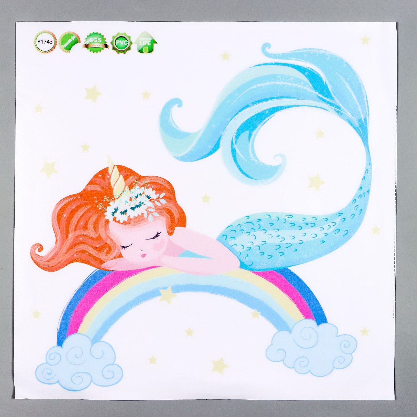Наклейка пластик интерьерная цветная "Спящая русалочка на радуге" 30х30 см, 30x30 см., Китай