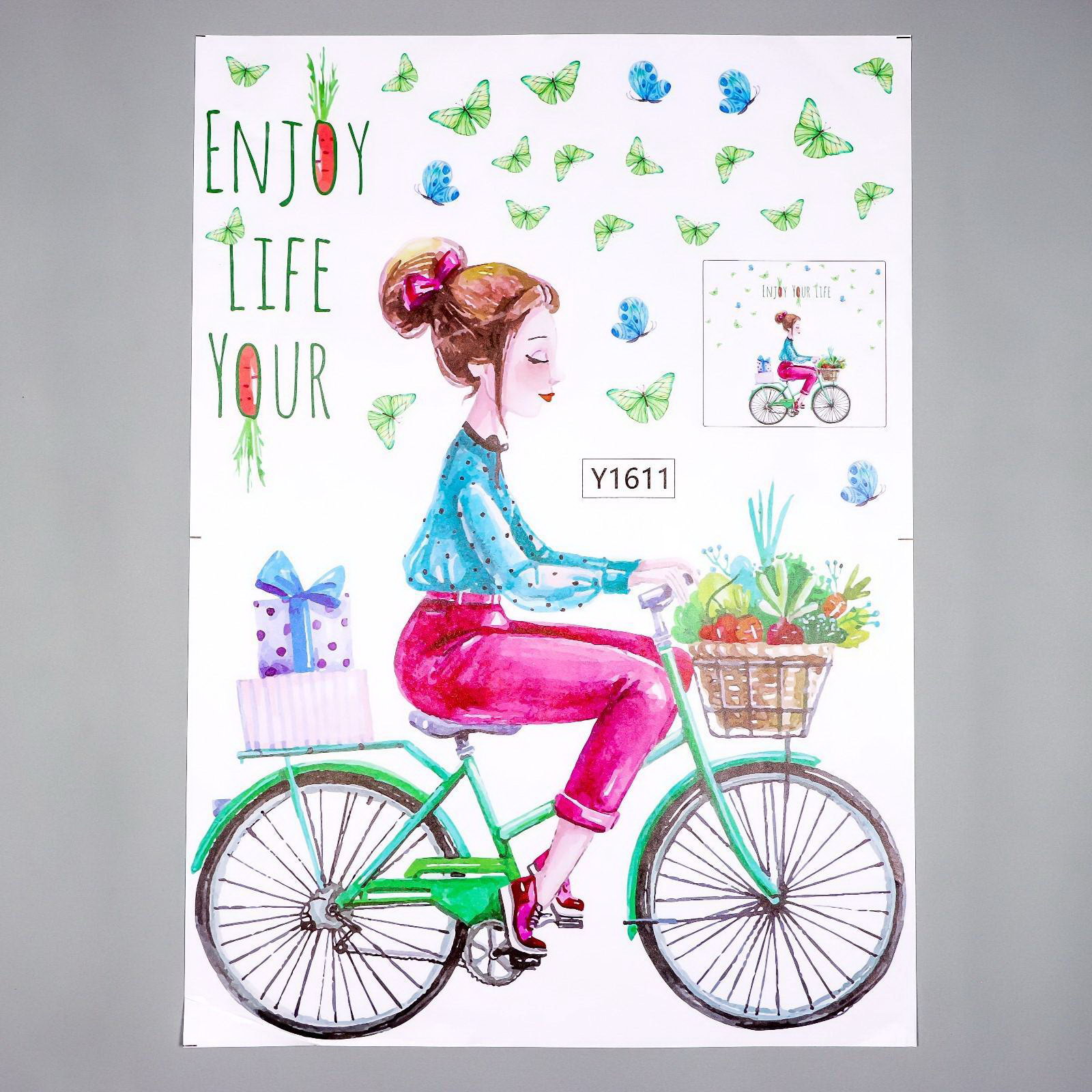 Наклейка пластик интерьерная цветная "Девушка на велосипеде" 50х70 см, 70x50 см., Китай