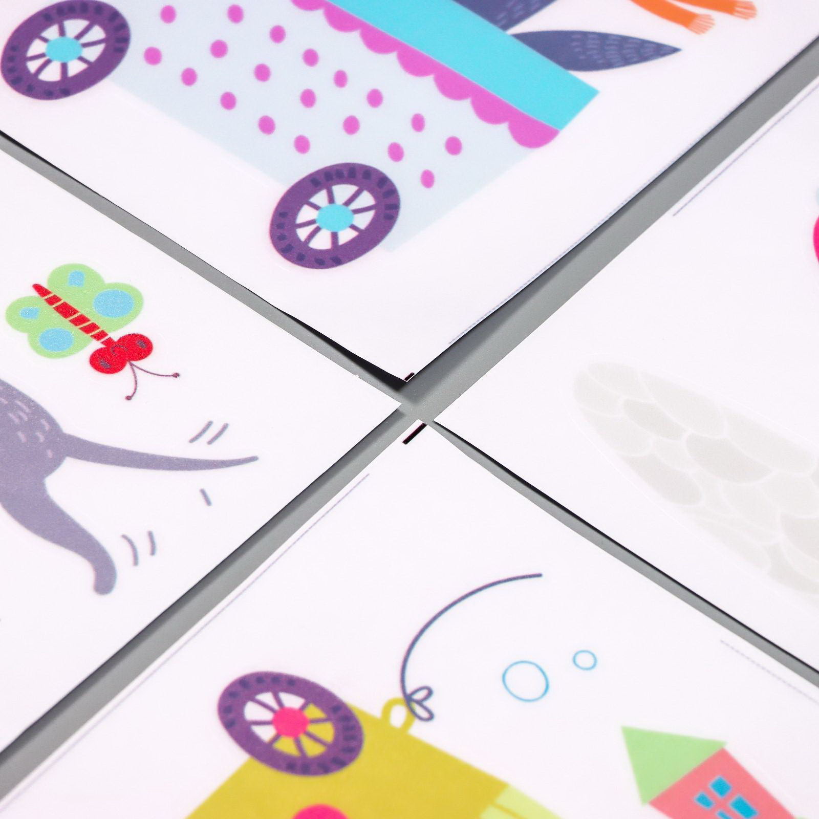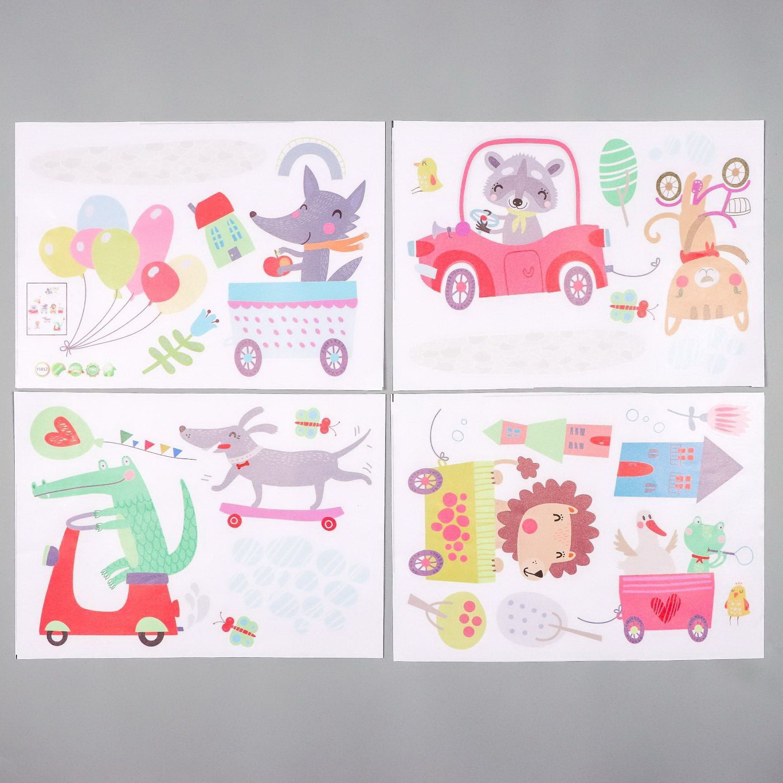 Наклейка пластик интерьерная цветная "Зверята и транспорт" 25х35 см набор 4 листа, 35x25 см., Китай