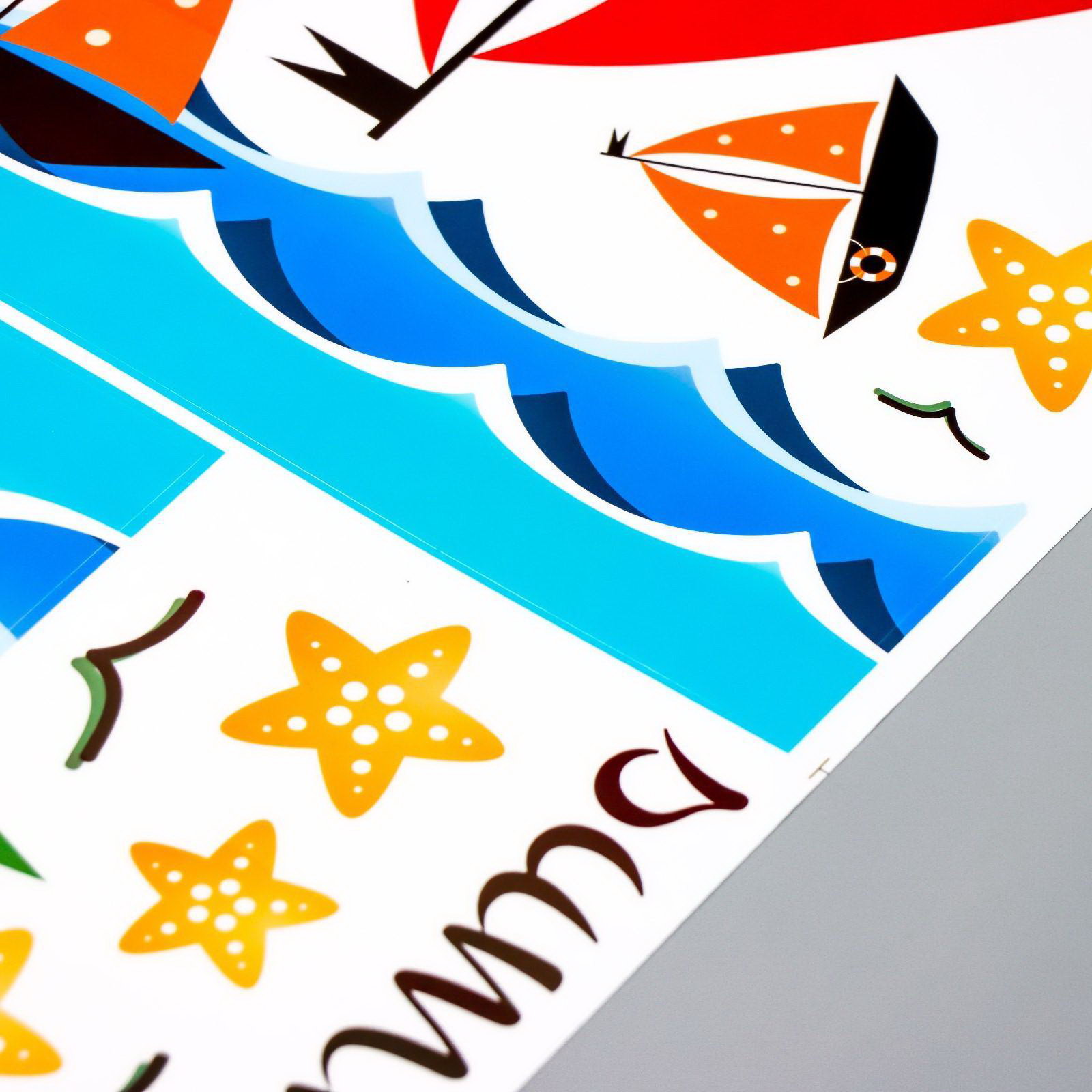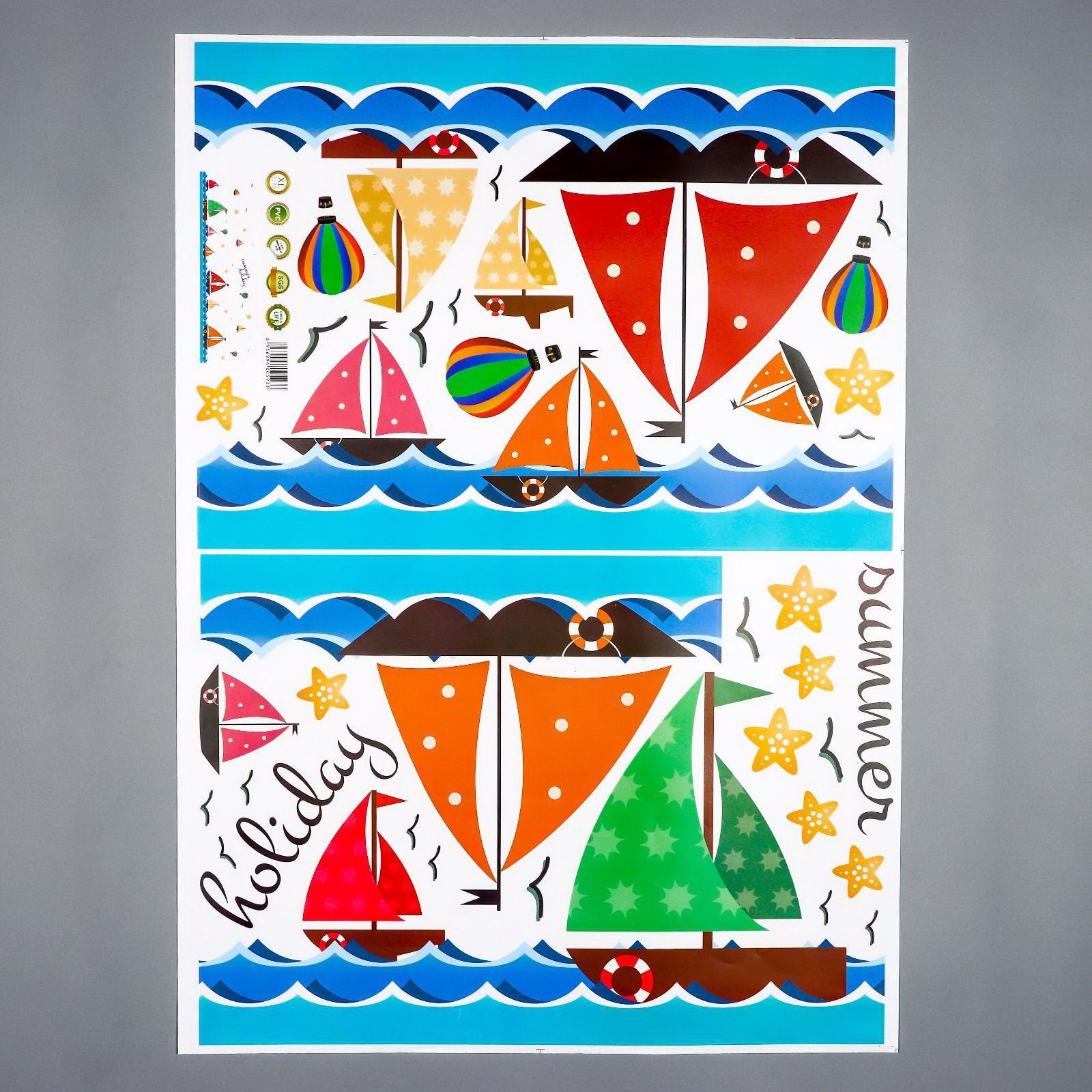 Наклейка пластик интерьерная цветная "Парусники в море" 50х70 см, 70x50 см., Китай