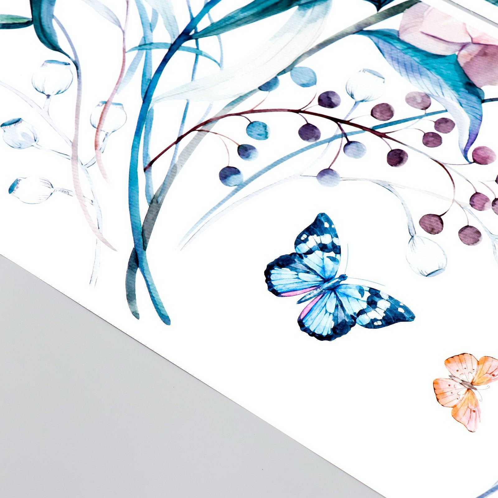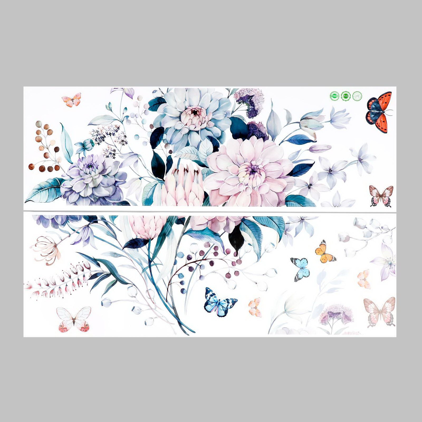 Наклейка пластик интерьерная цветная "Букет астр и бабочки" 30х90 см набор 2 листа, 90x30 см., Китай
