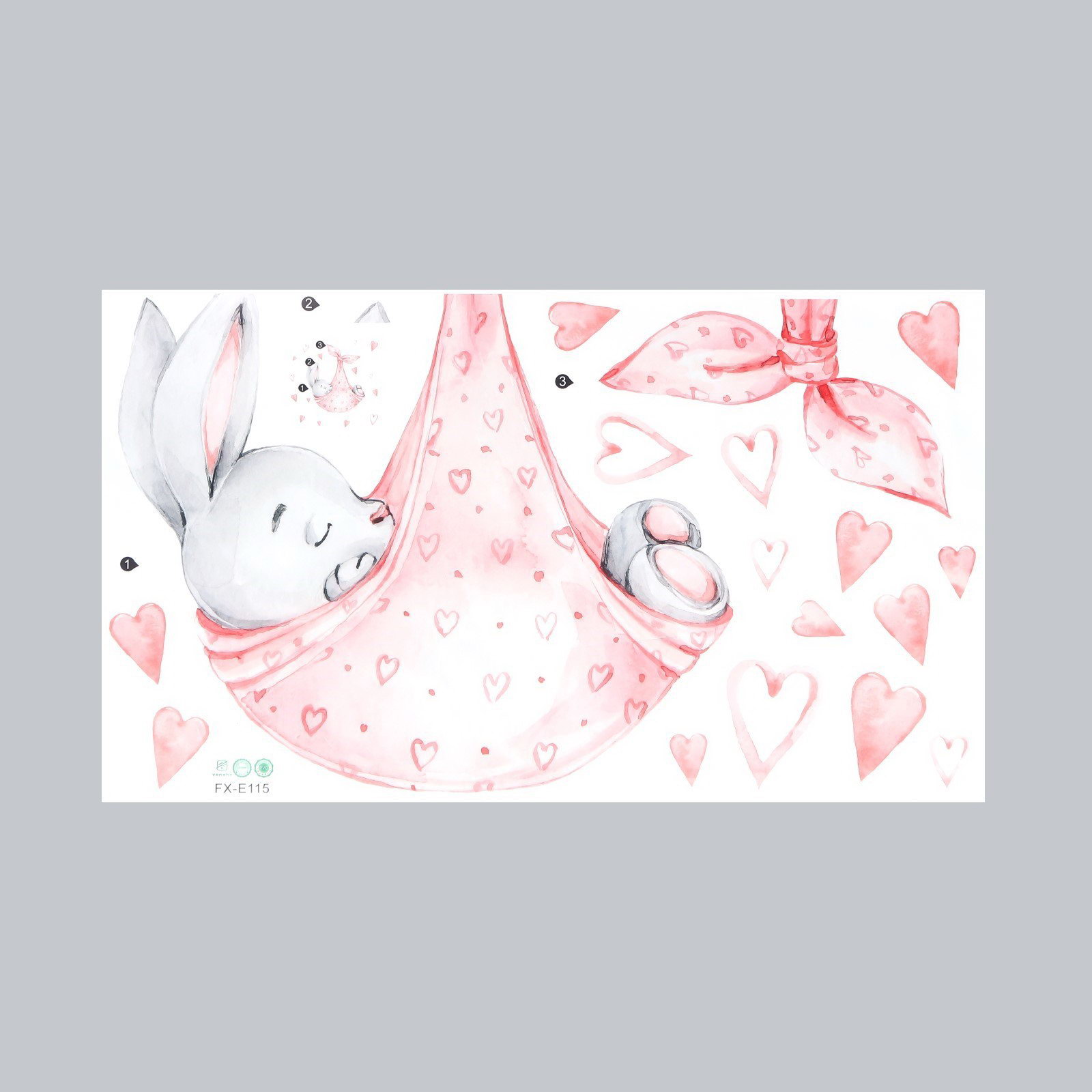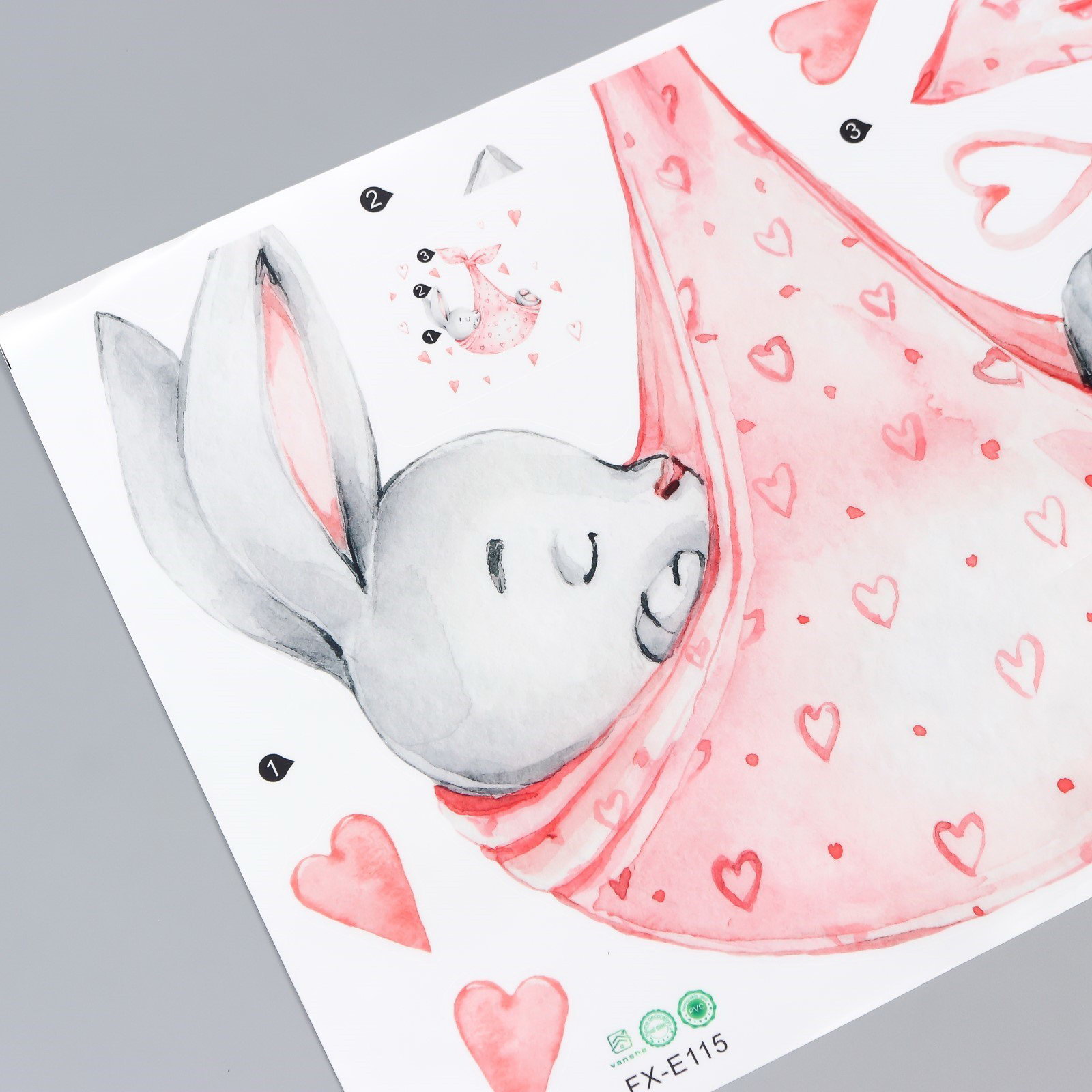 Наклейка пластик интерьерная цветная "Зайка спит в пеленке" 35х60 см, 60x35 см., Китай