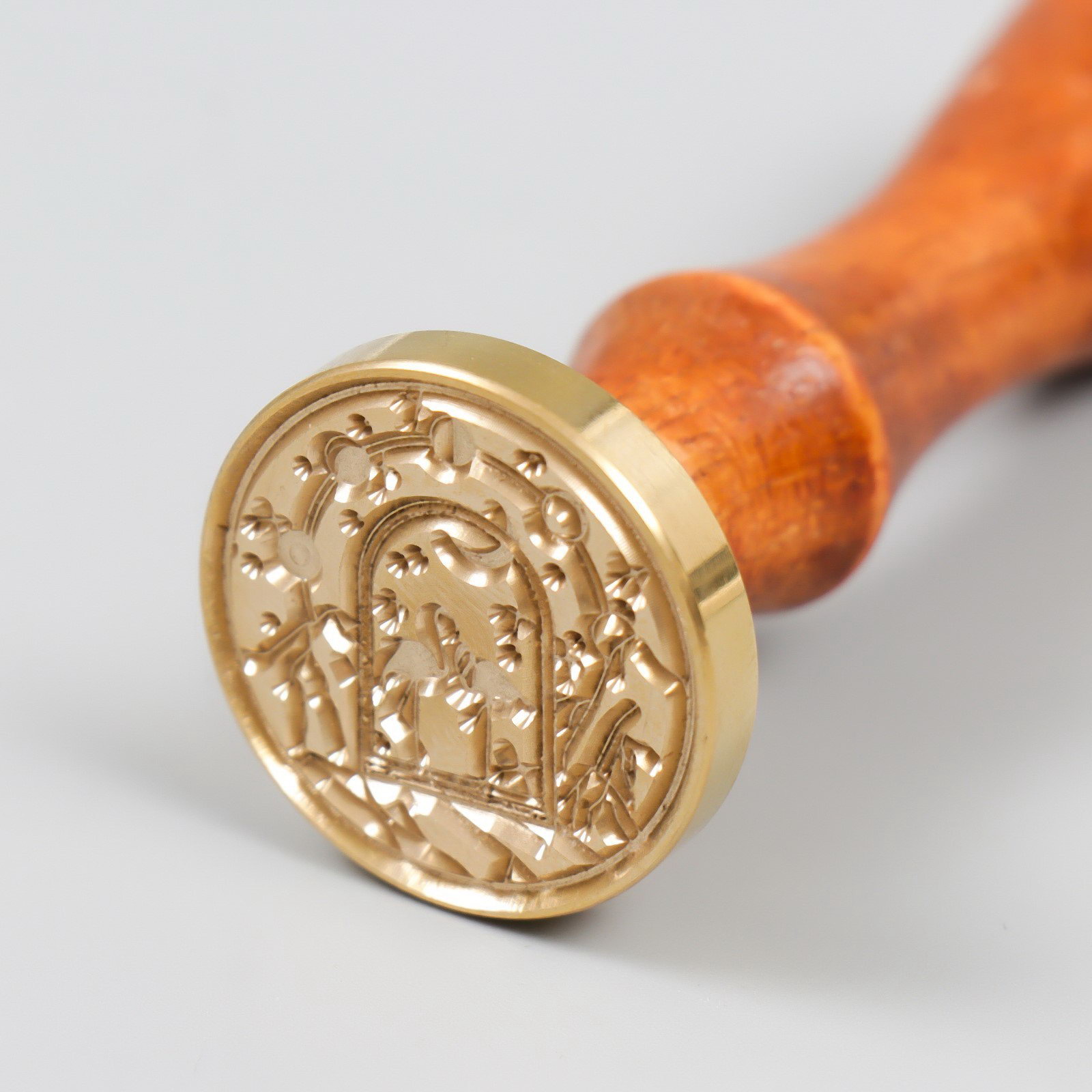 Печать для сургуча с деревянной ручкой "Фламинго в арке" 3х3 см, 3x3 см., Китай