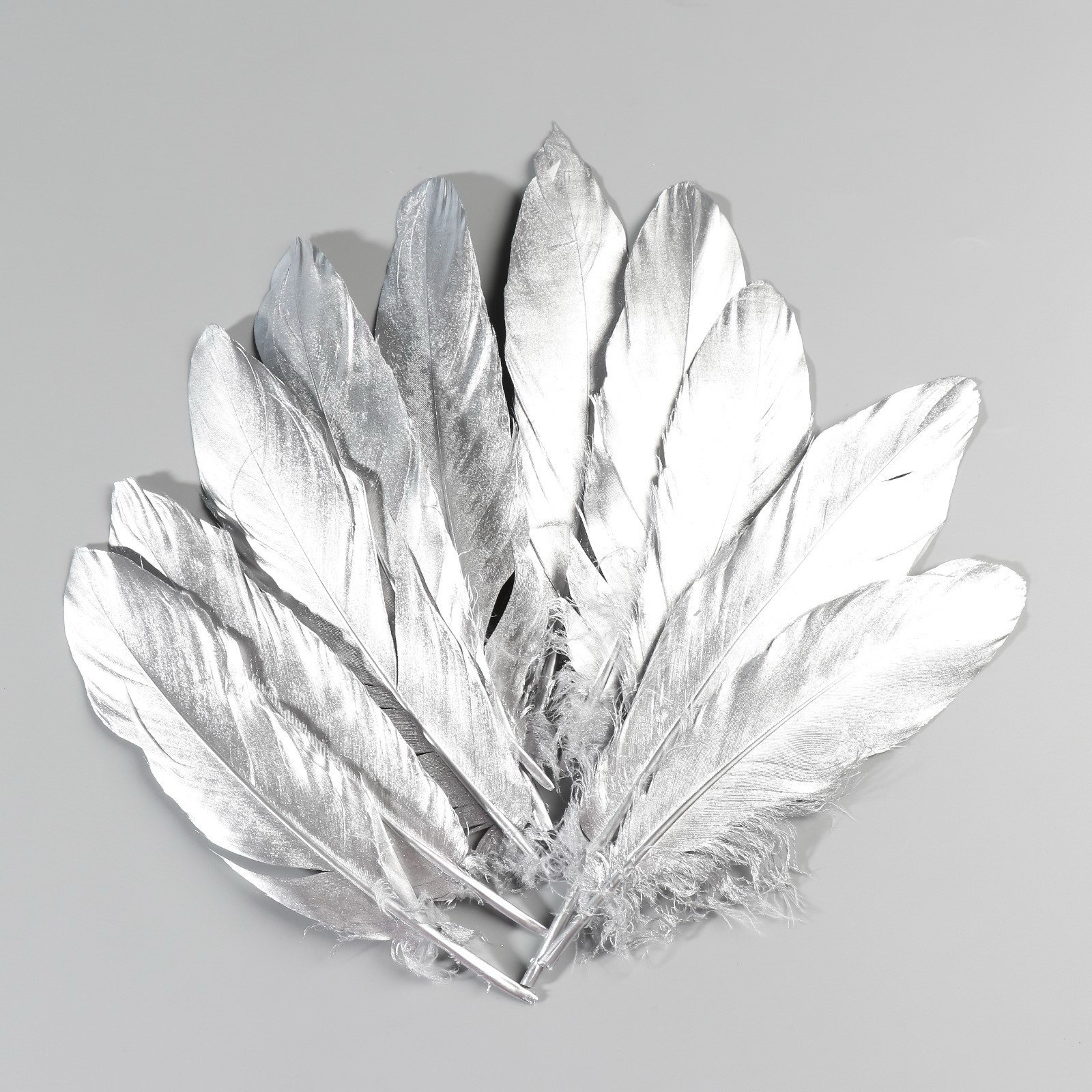 Набор перьев гуся 15-20 см, 10 шт, серебро, Китай