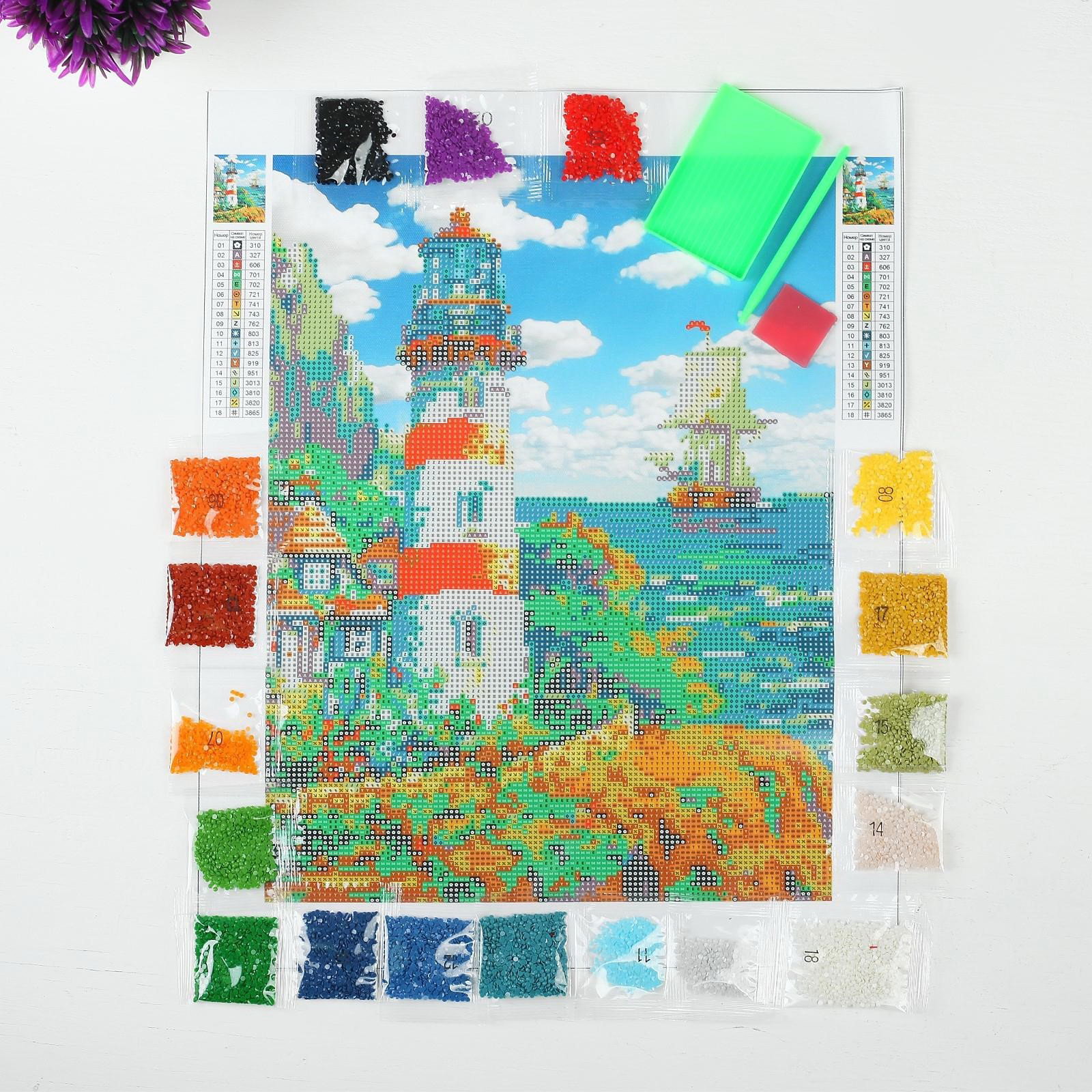 Алмазная мозаика с частичным заполнением "Маяк", 30x40 см, холст, ёмкость. Набор для творчества, 23.7x40x3.5 см., Школа талантов, Китай