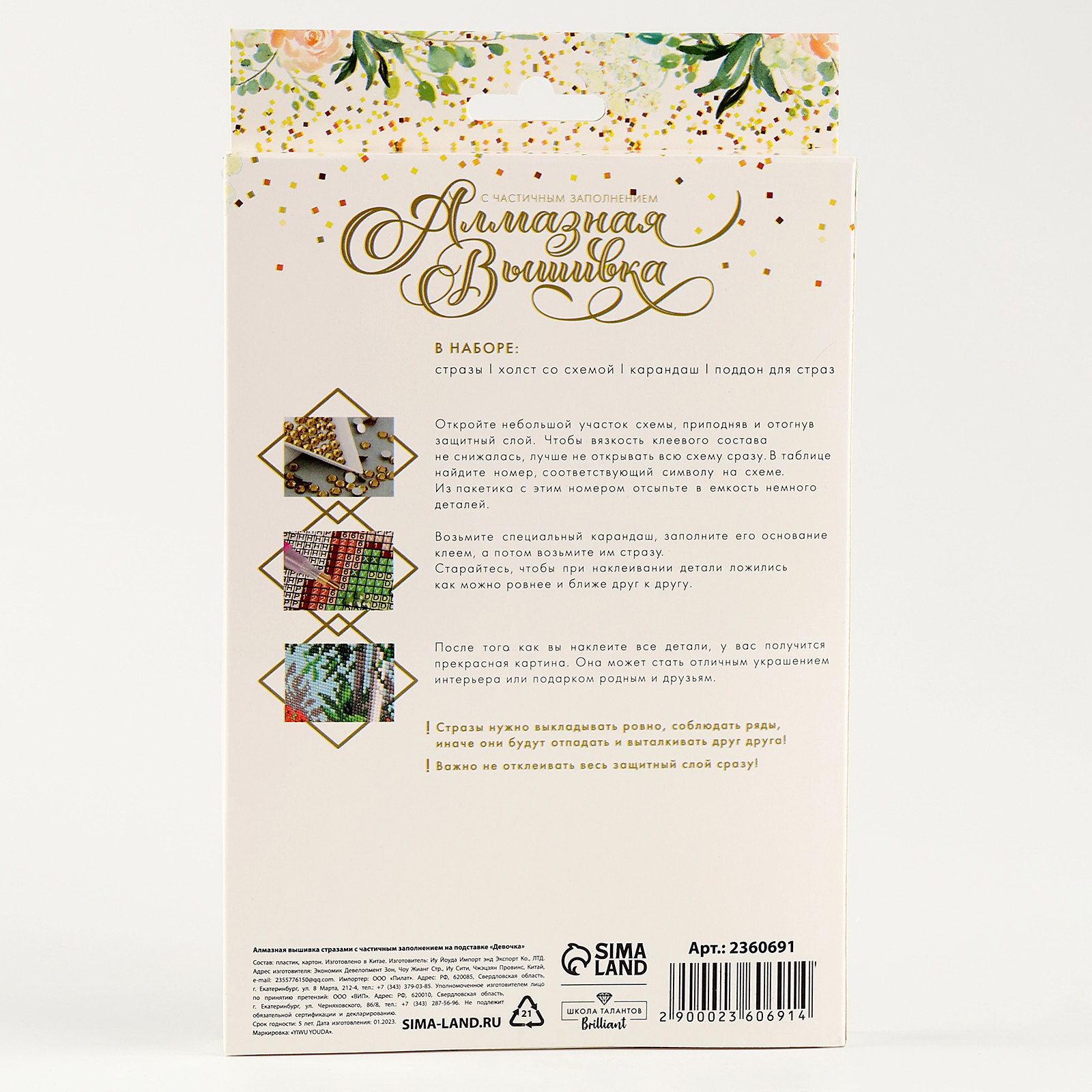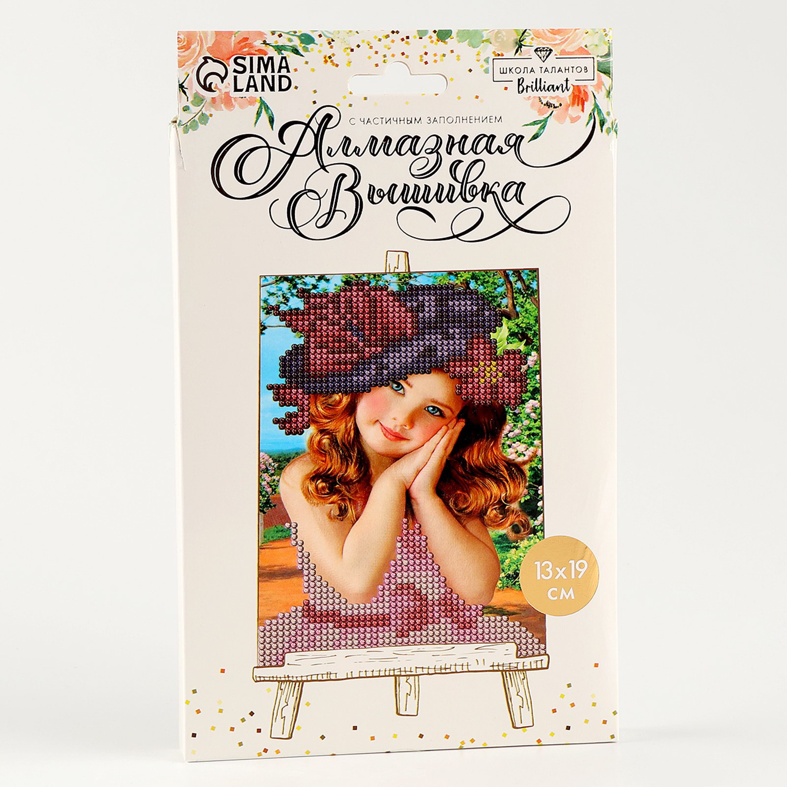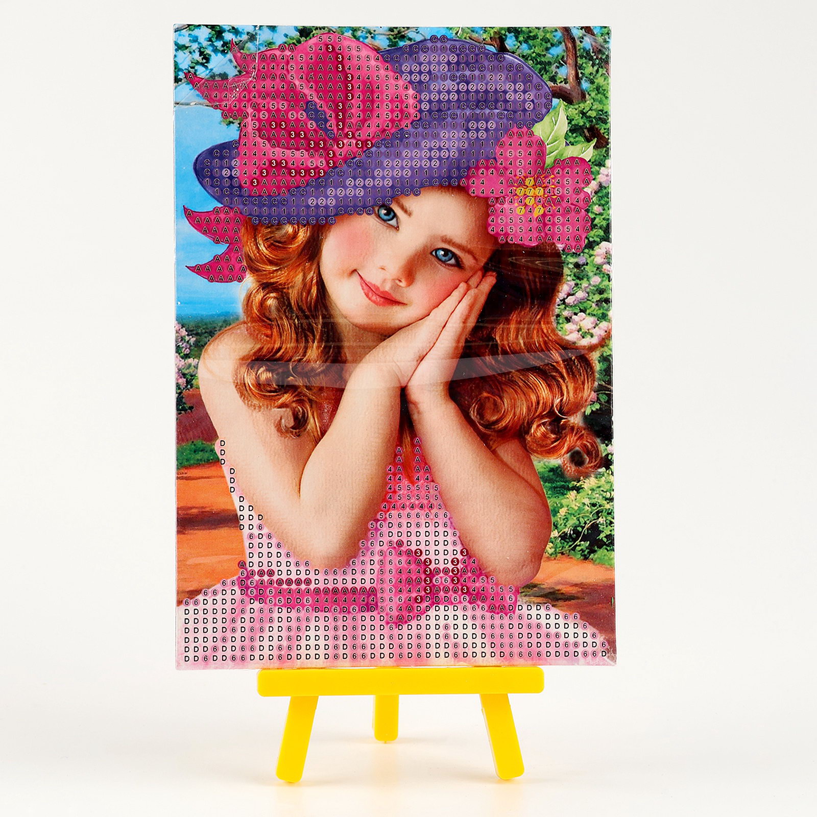 Алмазная мозаика с частичным заполнением на подставке "Девочка", 13 x 19 см, картон, 14.6x21.2x1.6 см., Школа талантов, Китай