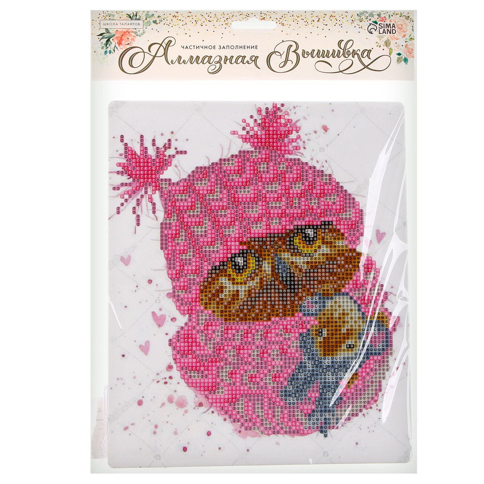 Алмазная вышивка "Сова в шапочке", с подставкой, с частичным заполнением, 25x1x21 см., Школа талантов, Китай