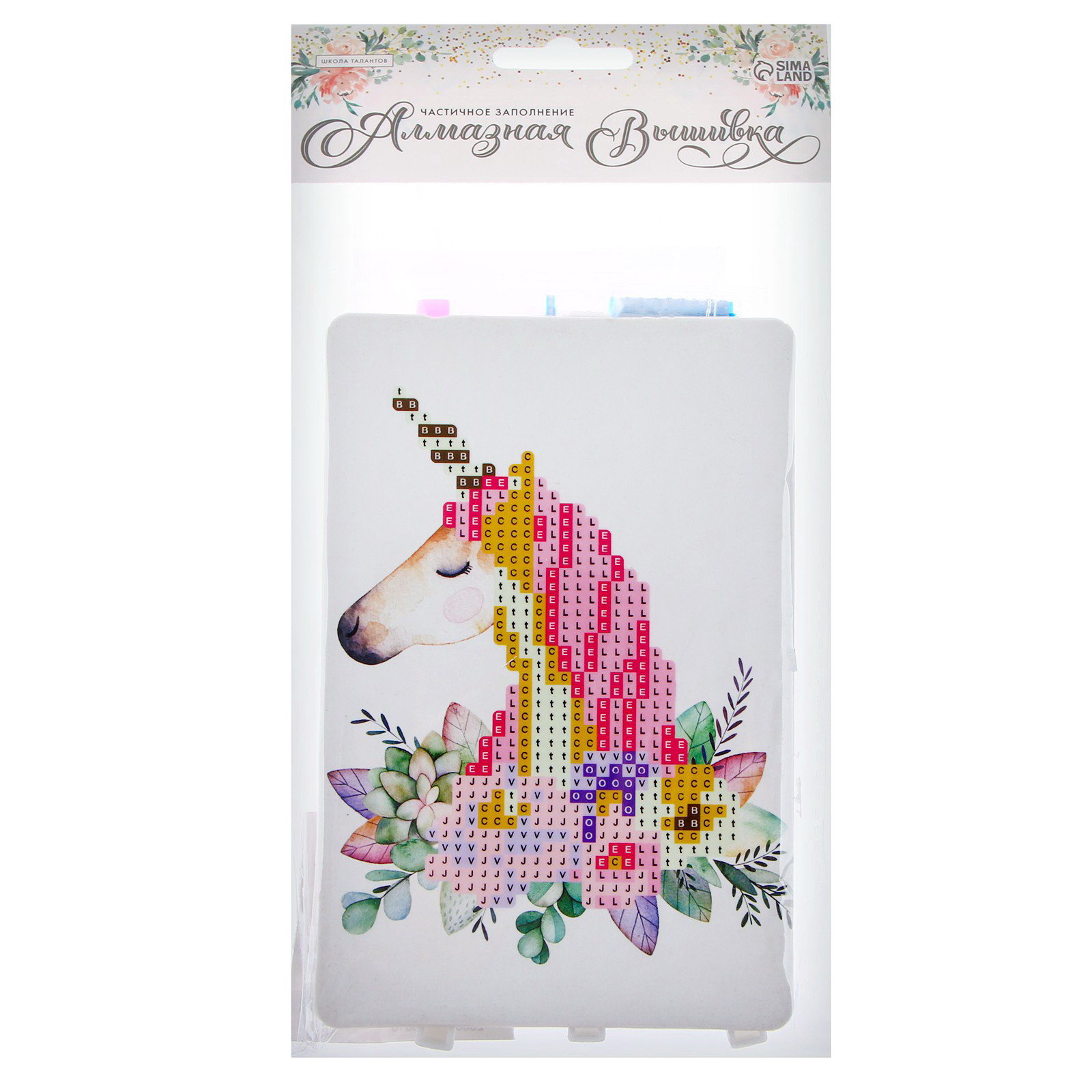 Алмазная вышивка "Единорог с цветами", 10 x 15 см, с подставкой, с частичным заполнением, 10x1x15 см., Школа талантов, Китай