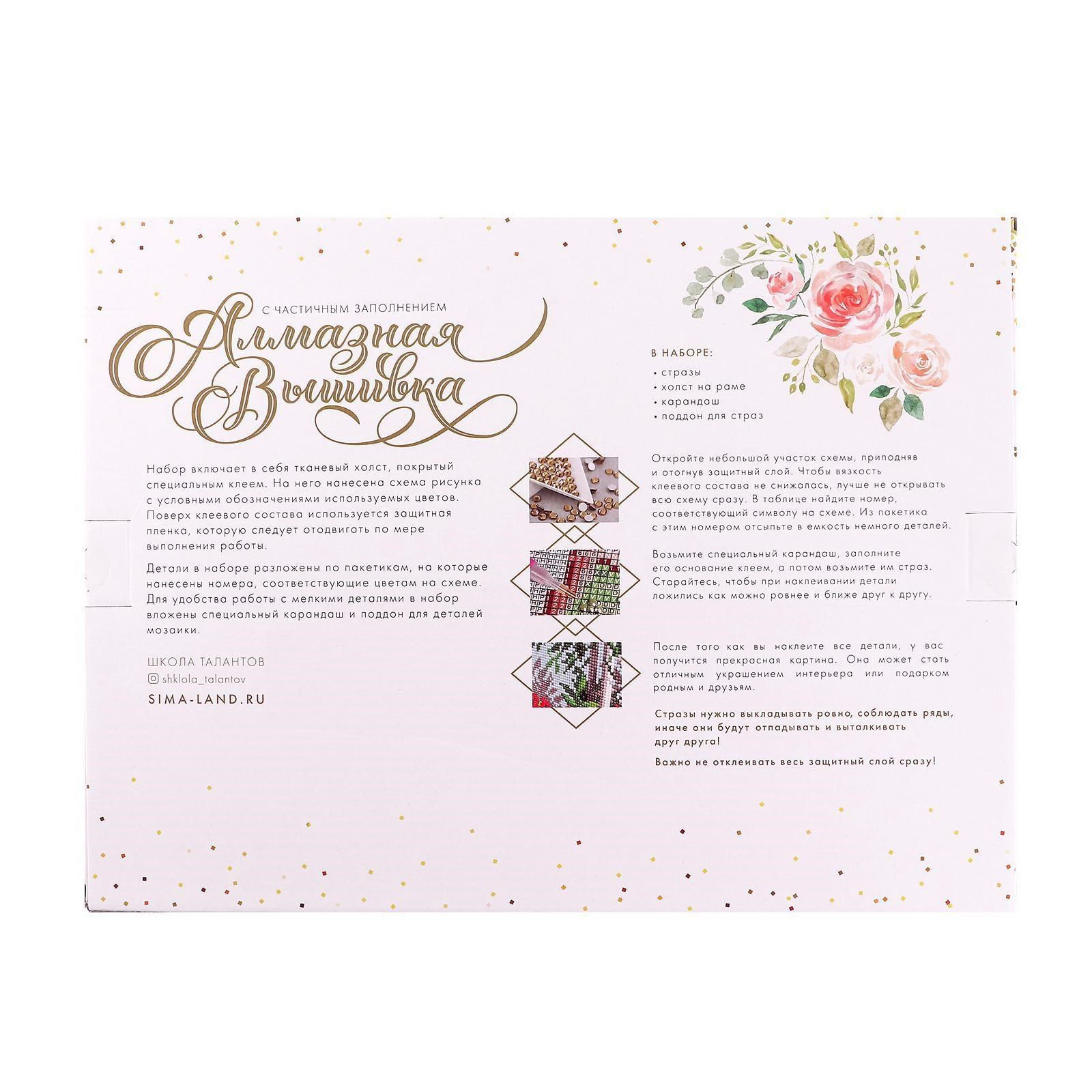 Размер упаковки: 31 x 3 x 41 см. Размер упаковки: 31 x 3 x 41 см. tnved: 4911990000 Размер, см: 30 x 40 Ориентация изображения: Вертикально Для кого: Унисекс Форма страз: Круглые Тематика: Новогодняя Тип основы: Холст на подрамнике Тип выкладки: С частичным заполнением Высота, см: 3 Ширина, см: 40 Возраст: Для взрослых Материал для аппликации: Стразы Тематика праздника: Новый год Этот набор позволит создать настоящий шедевр своими руками! Разложите кристаллики с помощью карандаша по указанной схеме, заполнив полотно. Тканевая основа с точечным клеевым покрытием будет надёжно удерживать стразы. На картине уже обозначены необходимые оттенки. Часть картины предстоит заполнить стразами, другая часть напечатана на холсте-основе такое изделие легче и быстрее создать. Поэтому набор подойдёт для тех, кто впервые пробует свои силы в этой технике или любит быстро добиваться результата. Сияющее полотно украсит любой интерьер и станет отличным подарком для близких. | ||