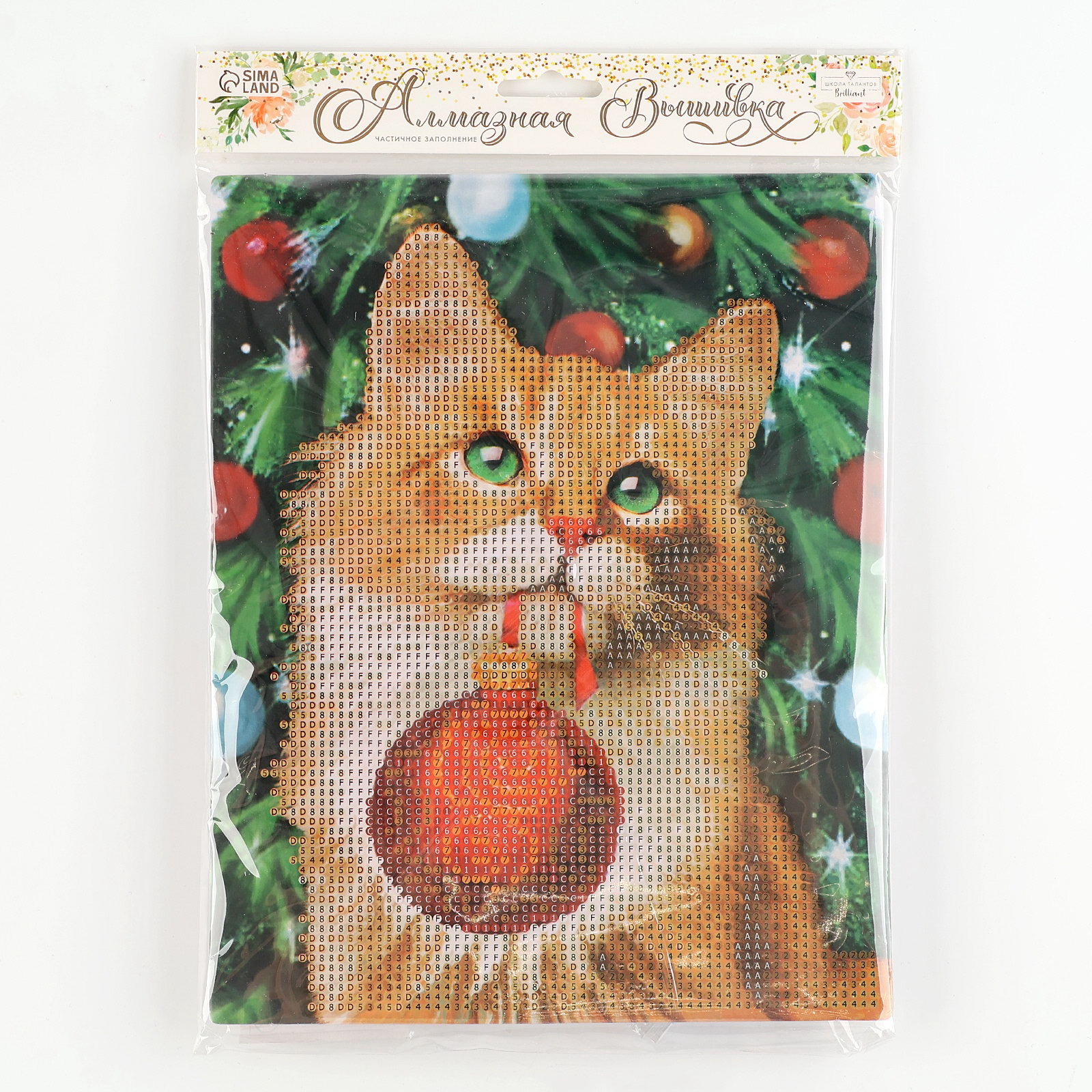 Алмазная мозаика на новый год с частичным заполнением "Рыжий кот", 20 x 25 см, набор для творчества, 20x25x1 см., Школа талантов, Китай