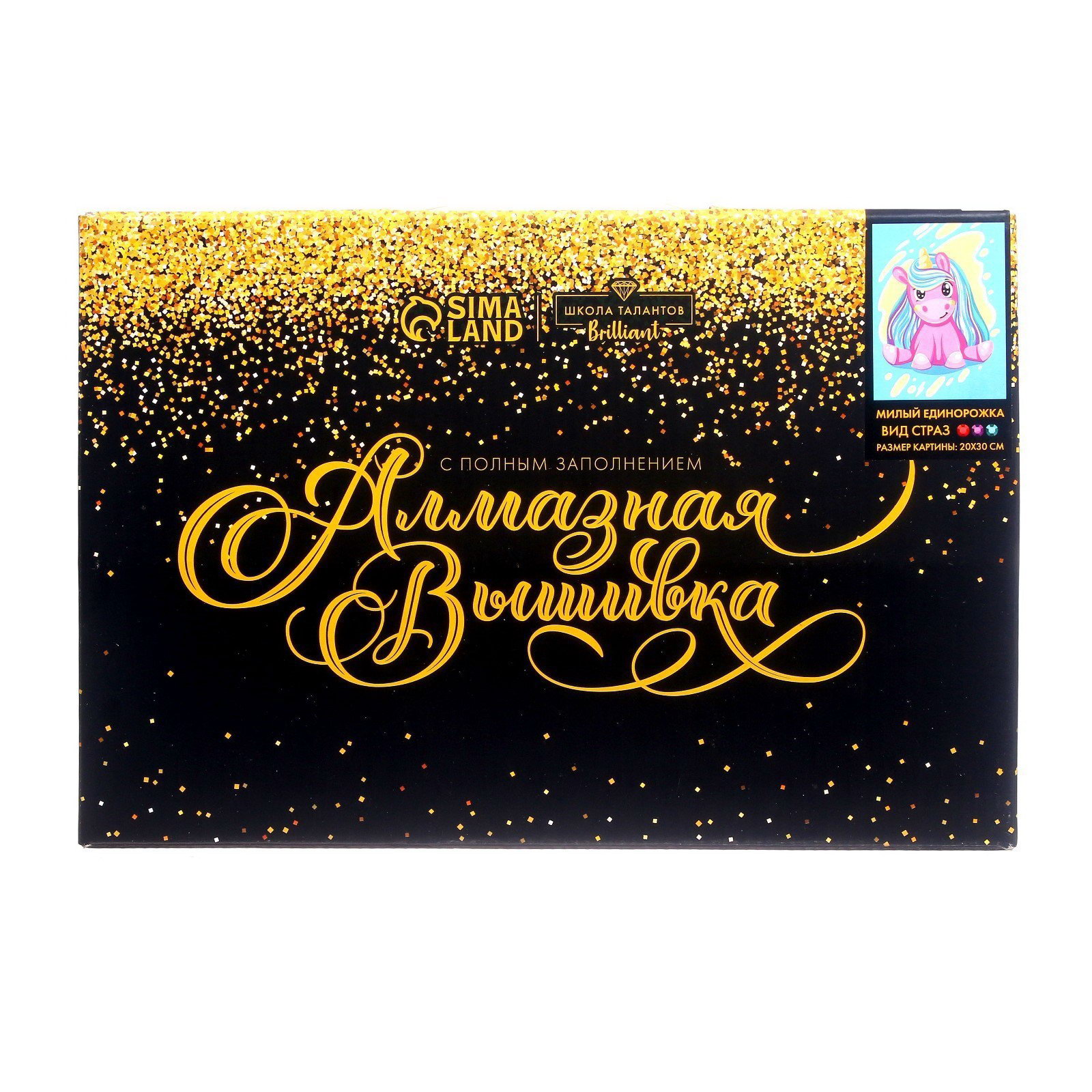 Алмазная мозаика на подрамнике с полным заполнением "Милый единорожка", 20х30 см, Школа талантов, Россия