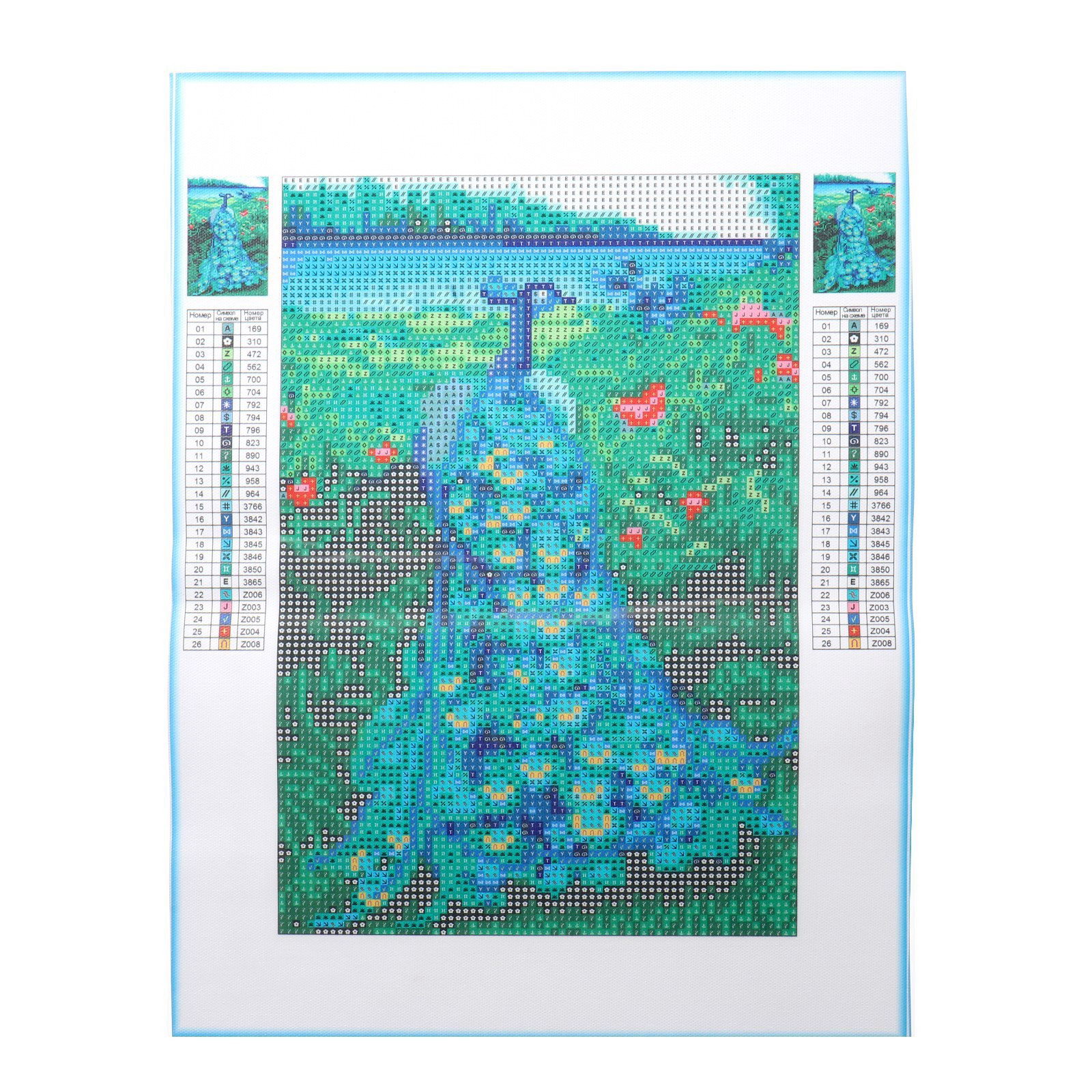 Алмазная мозаика с полным заполнением со светящимися стразами на холсте "Павлин", 20 x 30 см, 21x31x3 см., Школа талантов, Китай