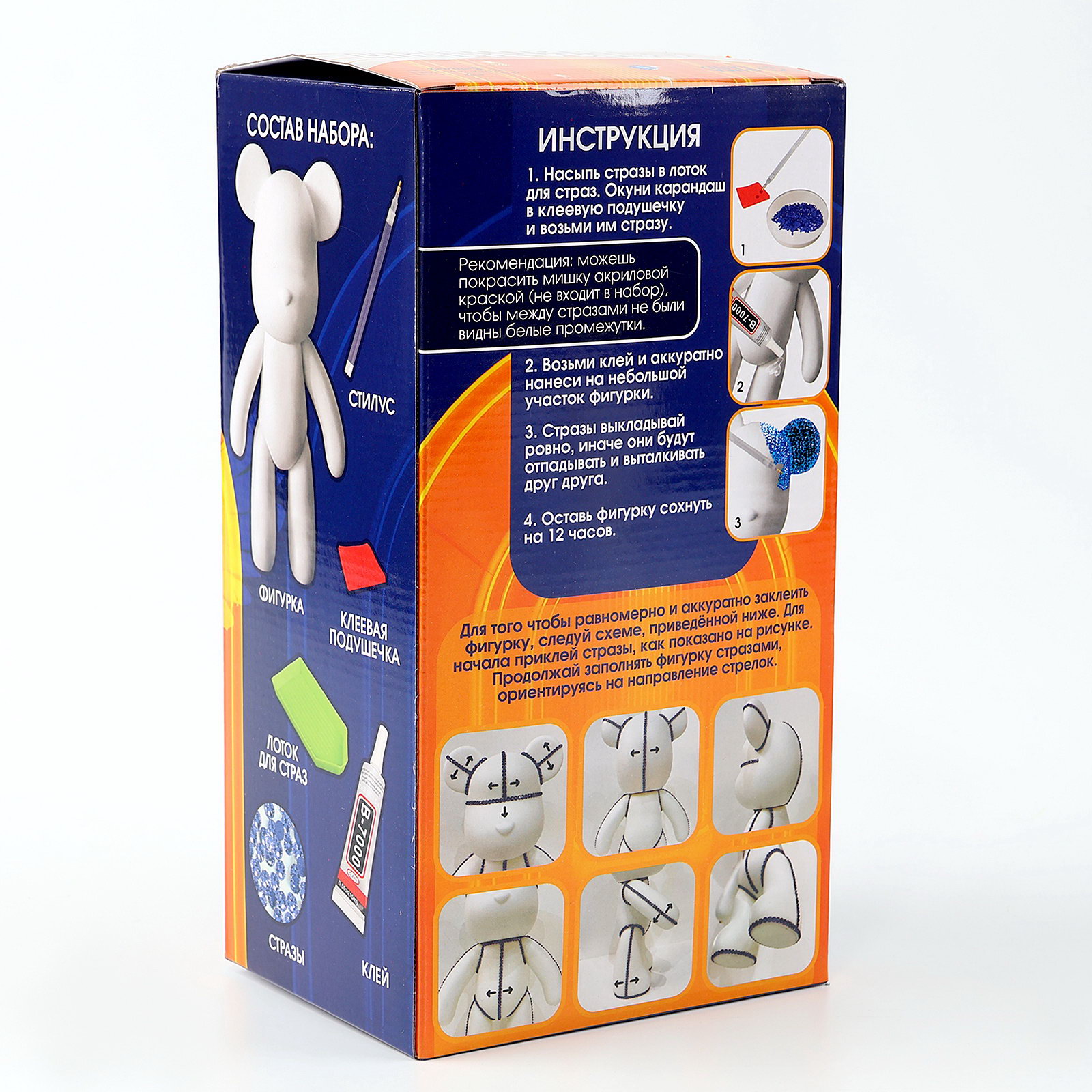 Алмазная мозаика на фигурке с полным заполнением "Медведь", синий, 13x23.5x11.5 см., Школа талантов, Китай