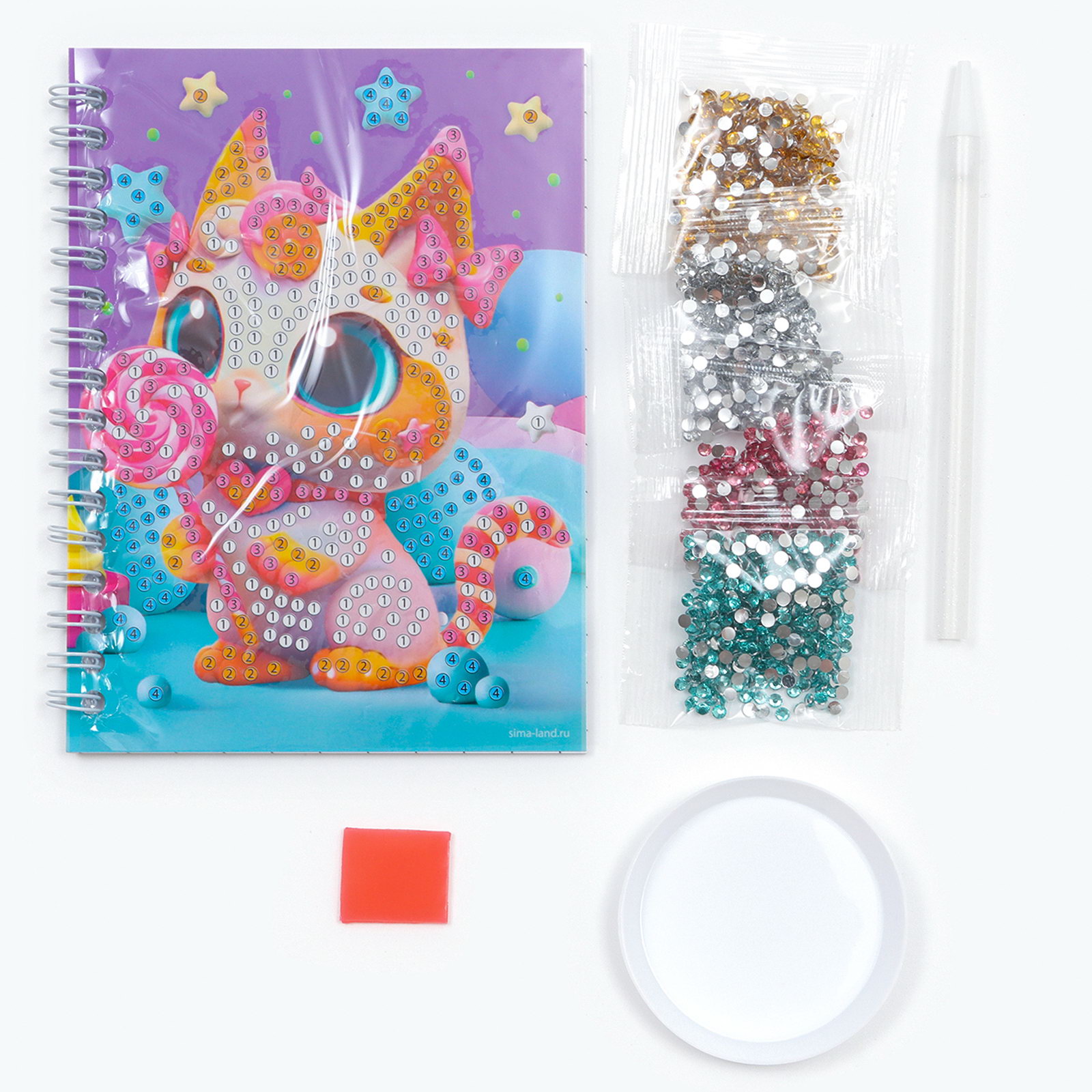 Тематика: Детская, Животный мир Размер упаковки: 2 x 15 x 11 см. Тип выкладки: С частичным заполнением Тип основы: Блокнот Форма страз: Круглые Для кого: Унисекс Высота, см: 15 Ширина, см: 11 Формат: А6 Отделка: Стразы Дизайн обложки: С рисунком Материал обложки: Картон Вид обложки: Мягкая Тип скрепления: На гребне/спирали Количество листов: 48 Материал для аппликации: Стразы Возраст: От 3 лет Ориентация изображения: Вертикально Размер, см: 11 x 15 Линовка блока: Клетка Количество цветов: 4 tnved: 9503007000 Алмазная мозаика это увлекательный вид творчества, который понравится любому малышу! Ребёнку предстоит разложить кристаллики карандашом по пронумерованной схеме. Обложка с клеевым покрытием будет надёжно удерживать стразы. Как создать мозаику