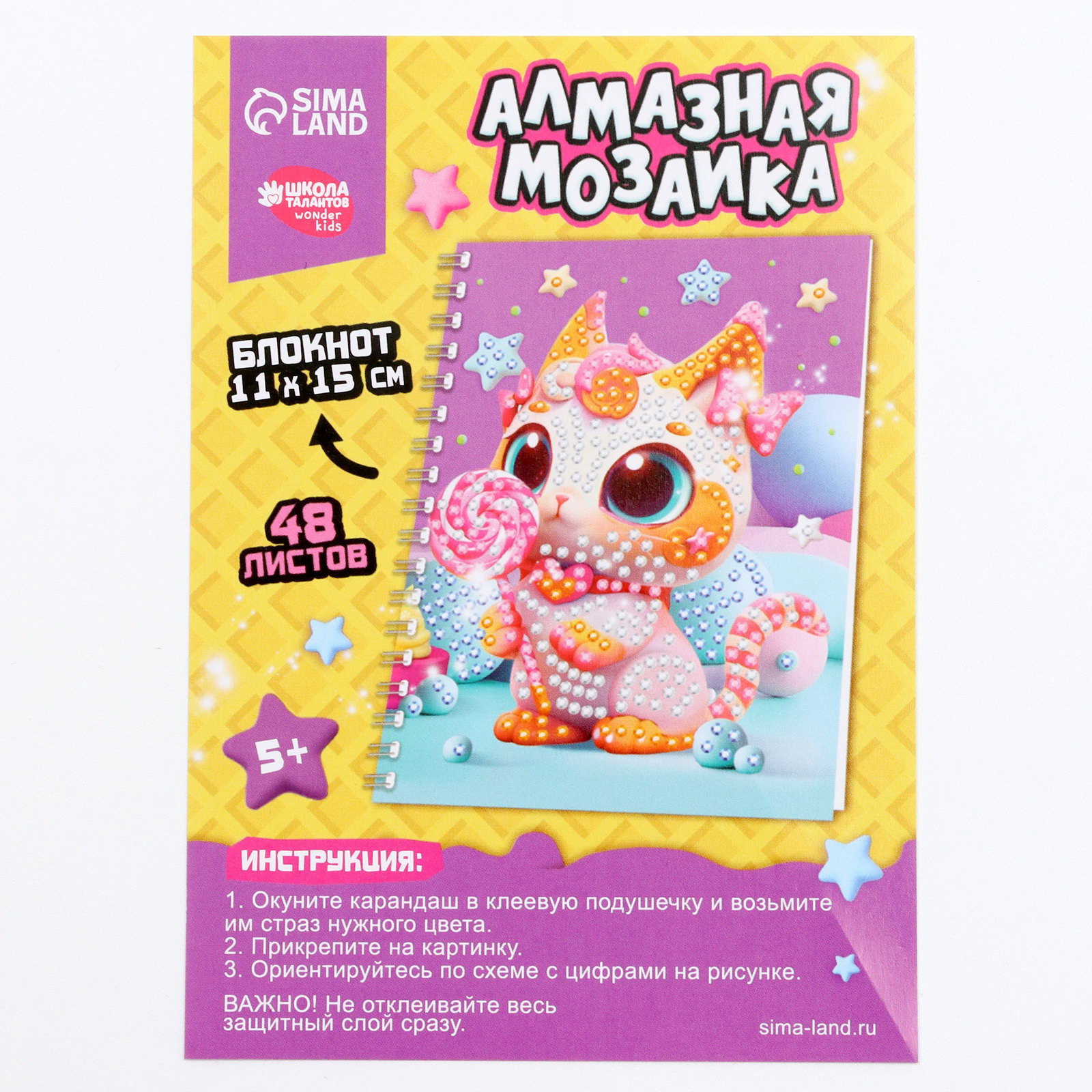 Алмазная мозаика с частичным заполнением для детей на блокноте "Сладкоежка", 11 x 15 см, 48 листов, Школа талантов, Китай