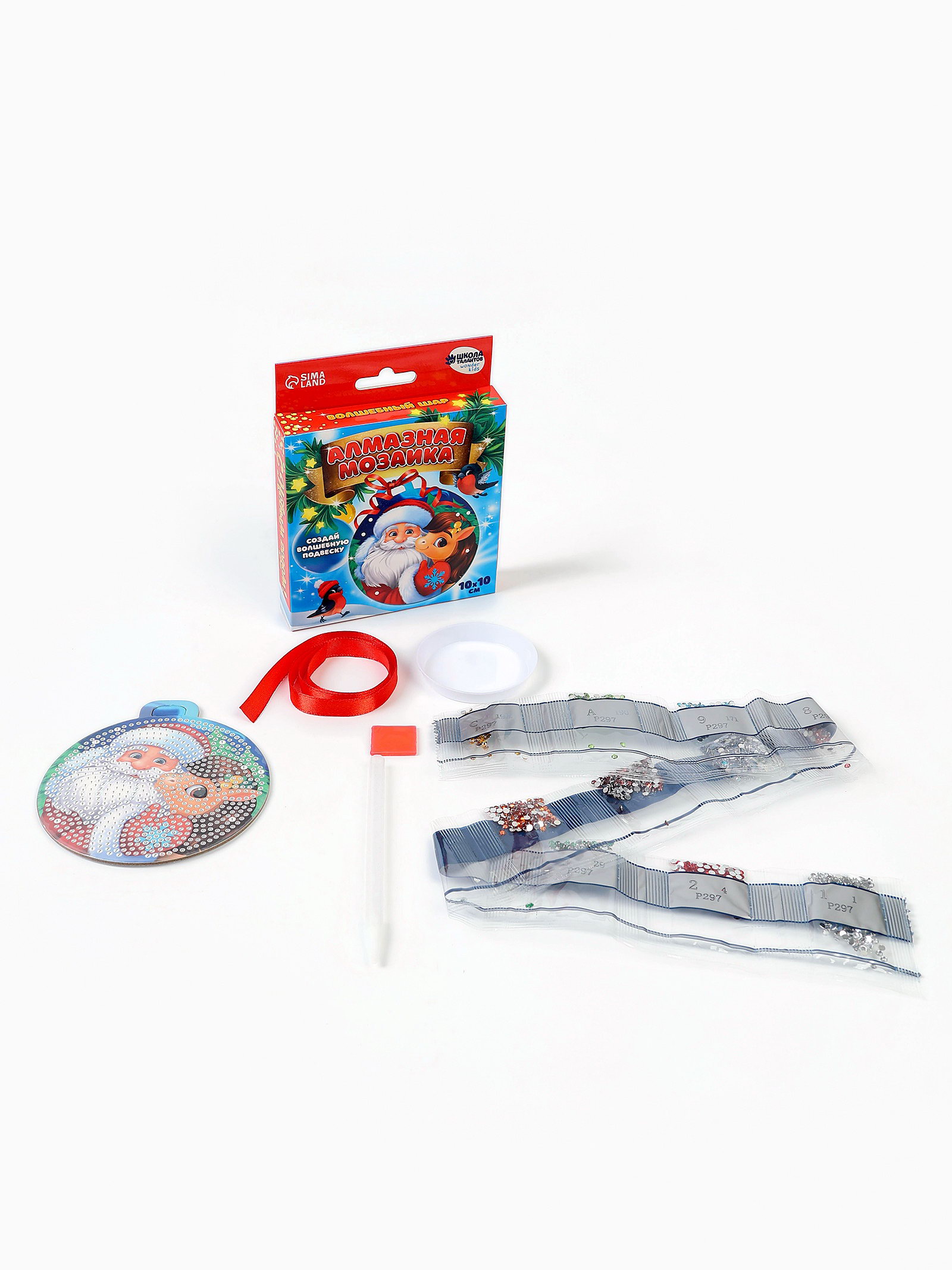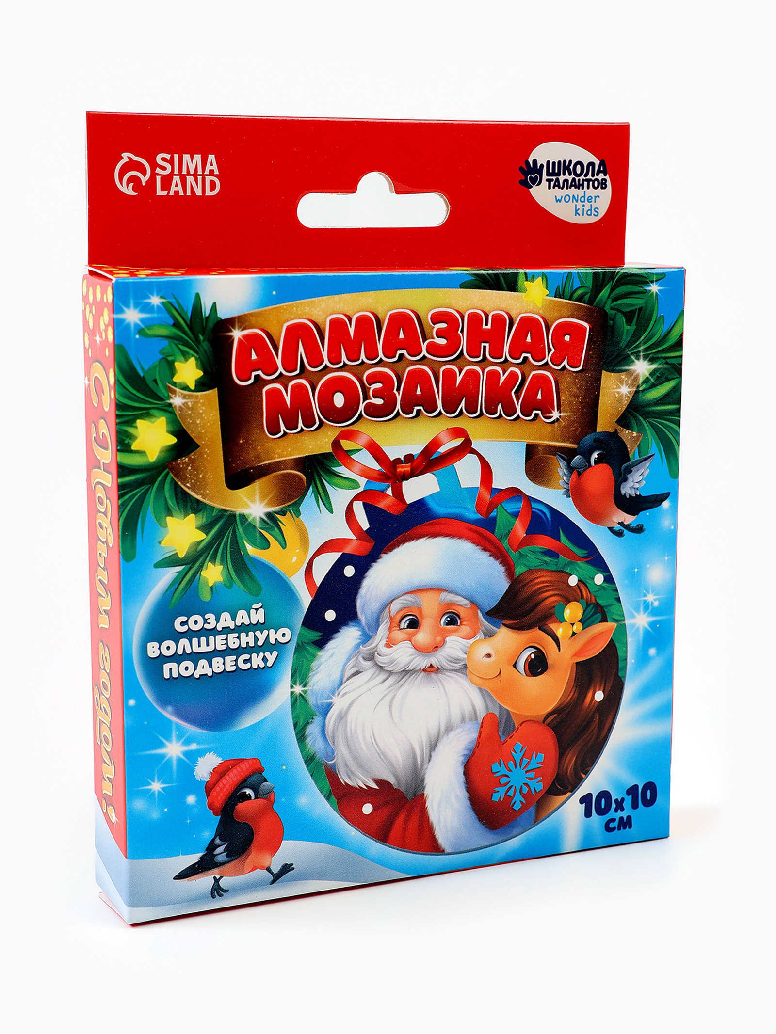 Алмазная мозаика на круглой подвеске 10x10 "Дед Мороз и Лошадка", 11.1x14x2.5 см., Школа талантов, Китай