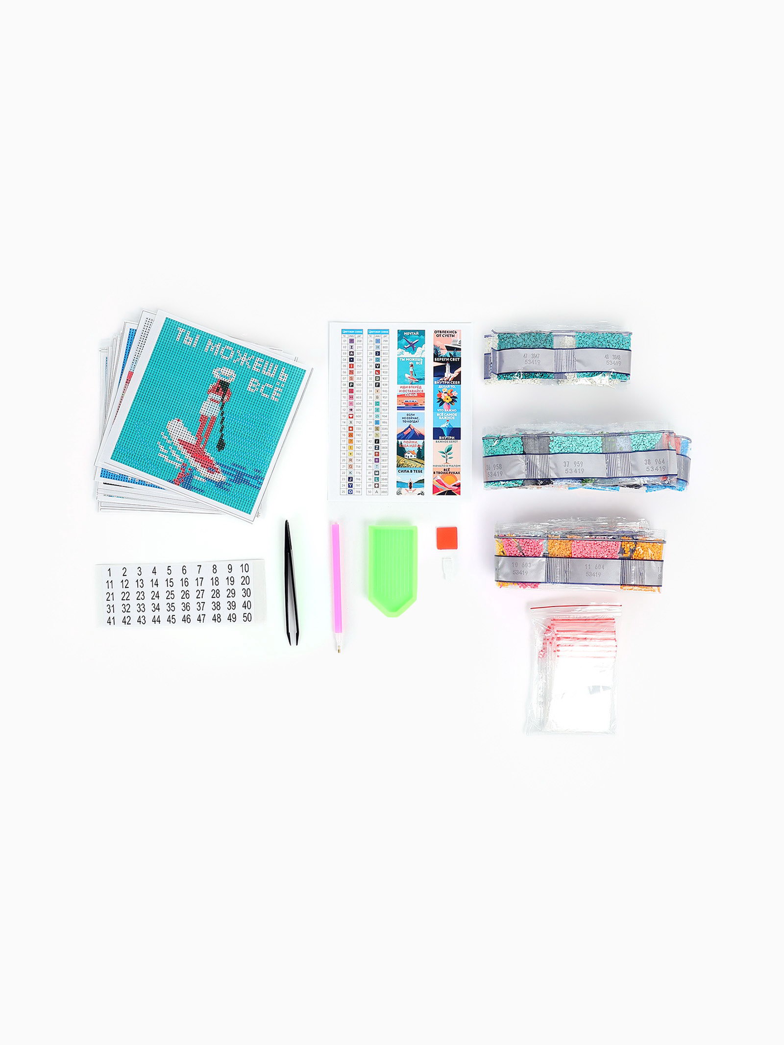 Размер упаковки: 6 x 18 x 19.5 см. tnved: 9503007000 Форма страз: Квадратные Размер, см: 14.5 x 14.5 Возраст: От 7 лет Ориентация изображения: Квадрат Тип выкладки: С полным заполнением Тип основы: Холст (без подрамника) Количество цветов: 50 Для кого: Унисекс Тематика: Надписи, цифры, буквы Откройте для себя вдохновение и творческую энергию с набором алмазной мозаики "Мотивация"! Этот комплект идеальный способ расслабиться, побороть усталость и наполнить своё пространство позитивом через создание сверкающих картин. В наборе: