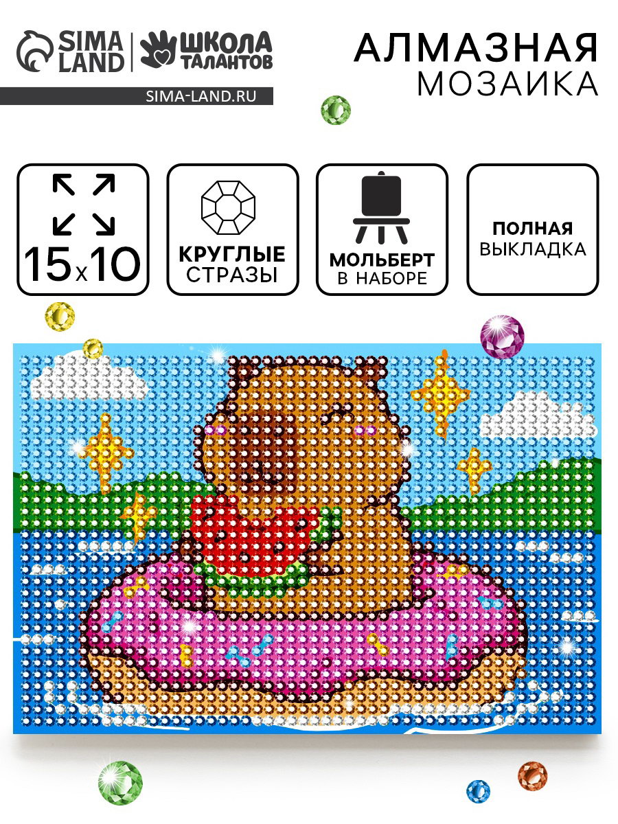 Алмазная мозаика с полным заполнением "Капибара", 10x15 см, 11x19x2.5 см., Школа талантов, Китай