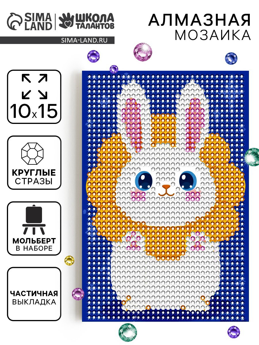 Алмазная мозаика с частичным заполнением "Зайка", 10x15 см, 11x19x2.5 см., Школа талантов, Китай