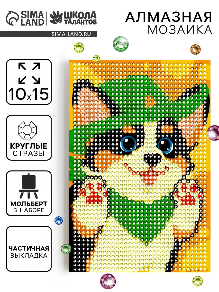 Алмазная мозаика с частичным заполнением "Добрая собачка", 10x15 см, 11x19x2.5 см., Школа талантов, Китай