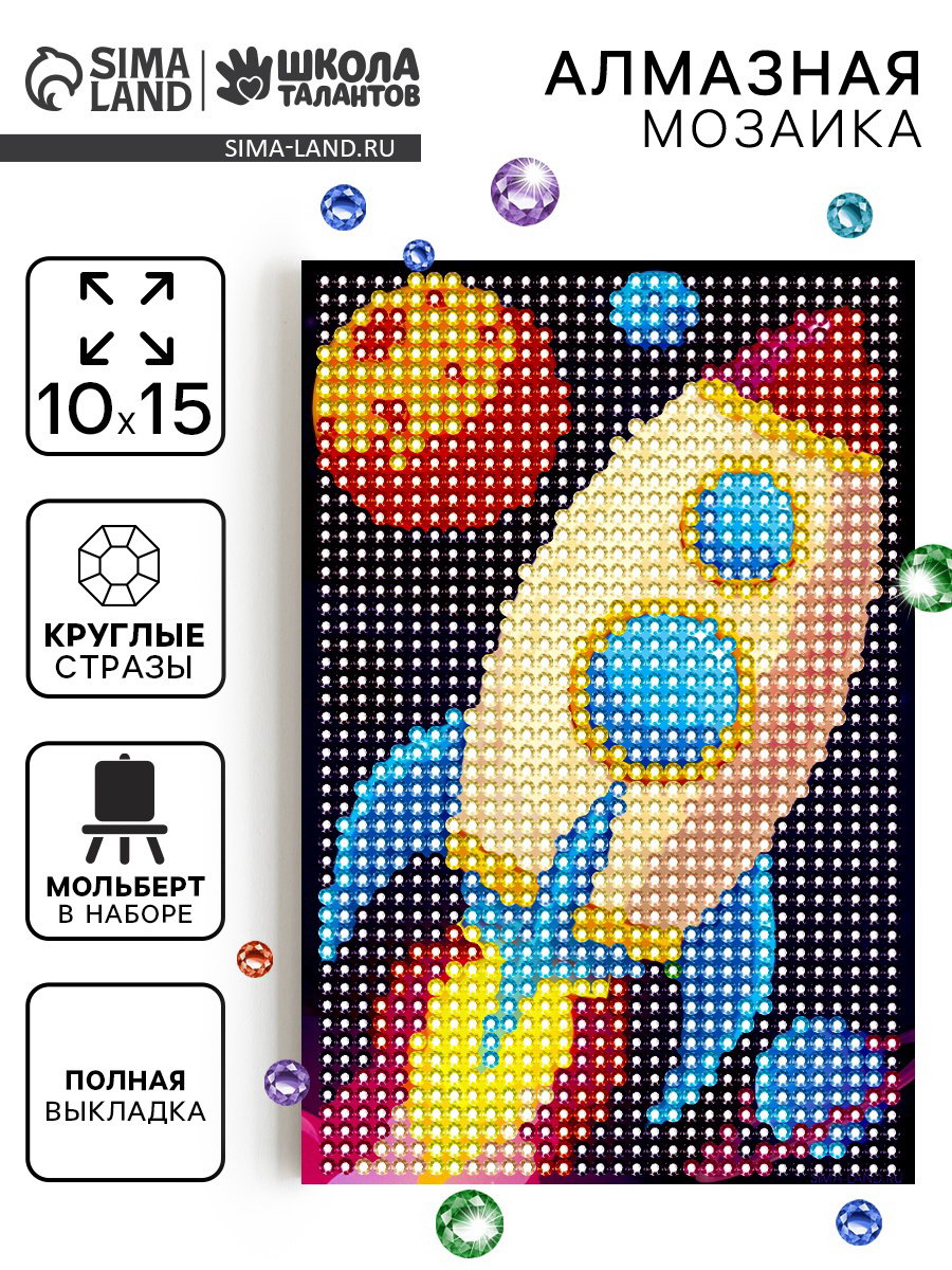Алмазная мозаика с полным заполнением "Ракета", 10x15 см, 11x19x2.5 см., Школа талантов, Китай
