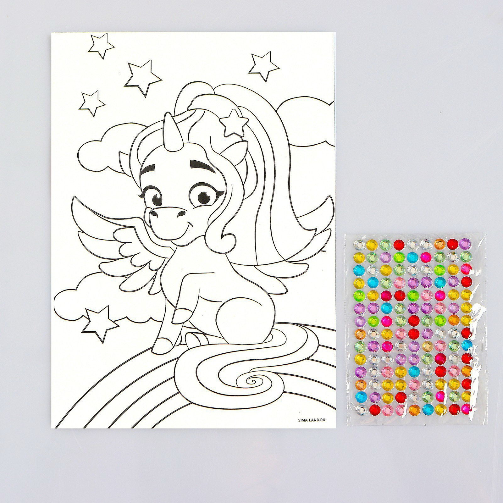Аппликация стразами "Волшебный единорог" 14.8х21 см, 21x14.8x0.3 см., Школа талантов, Китай