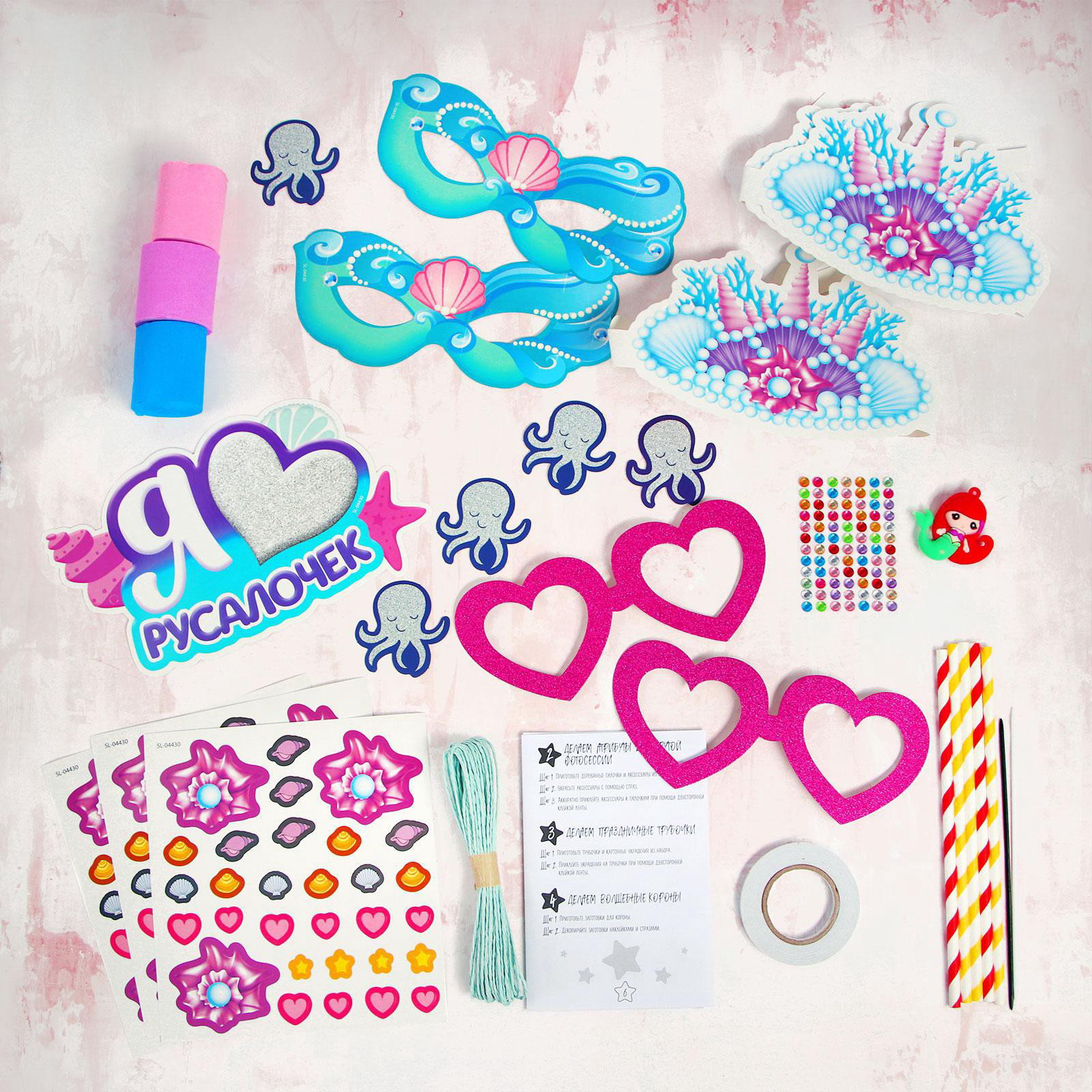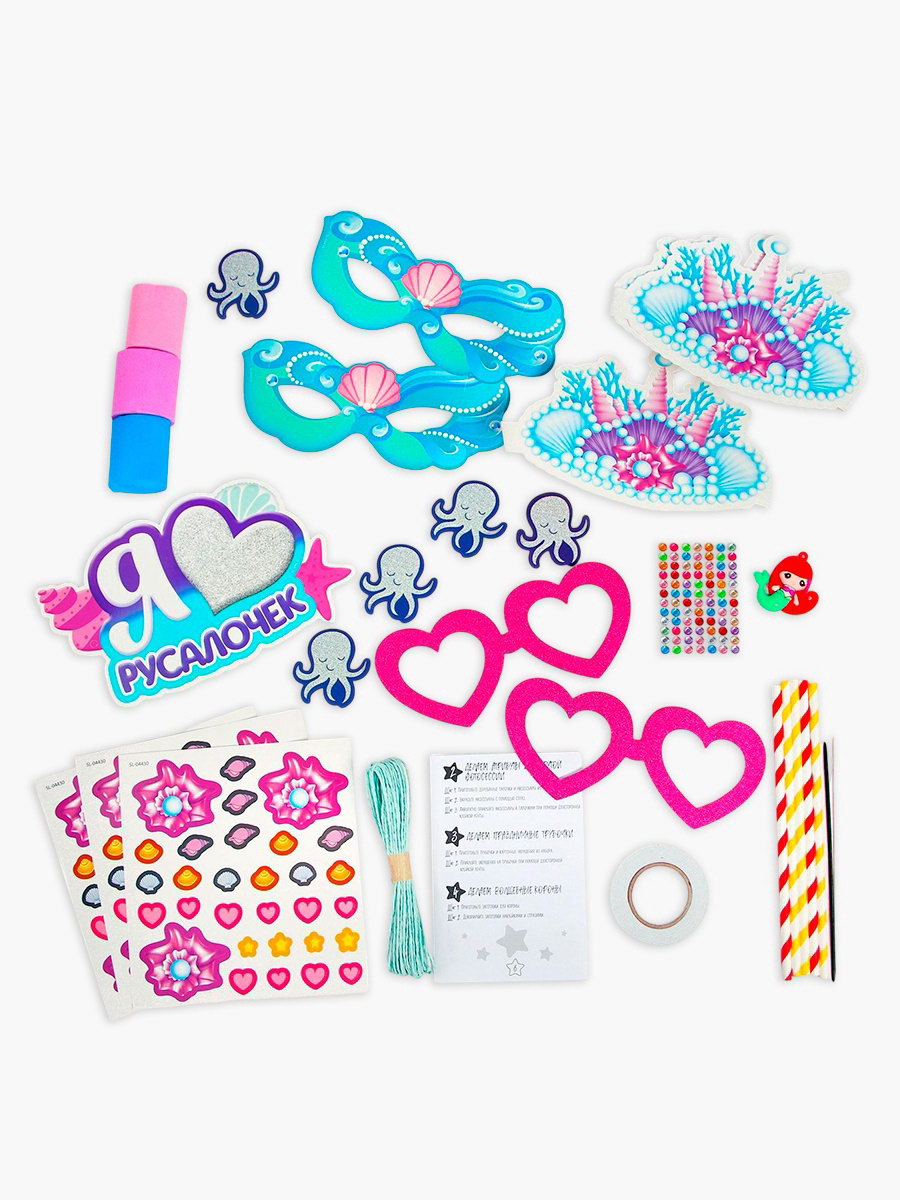 Набор для творчества "Моя вечеринка. Мы русалочки", в пакете, изготовление в теме "Русалочки": корон, гирлянды, фотобутафории, 4x15x15 см., Школа талантов, Китай
