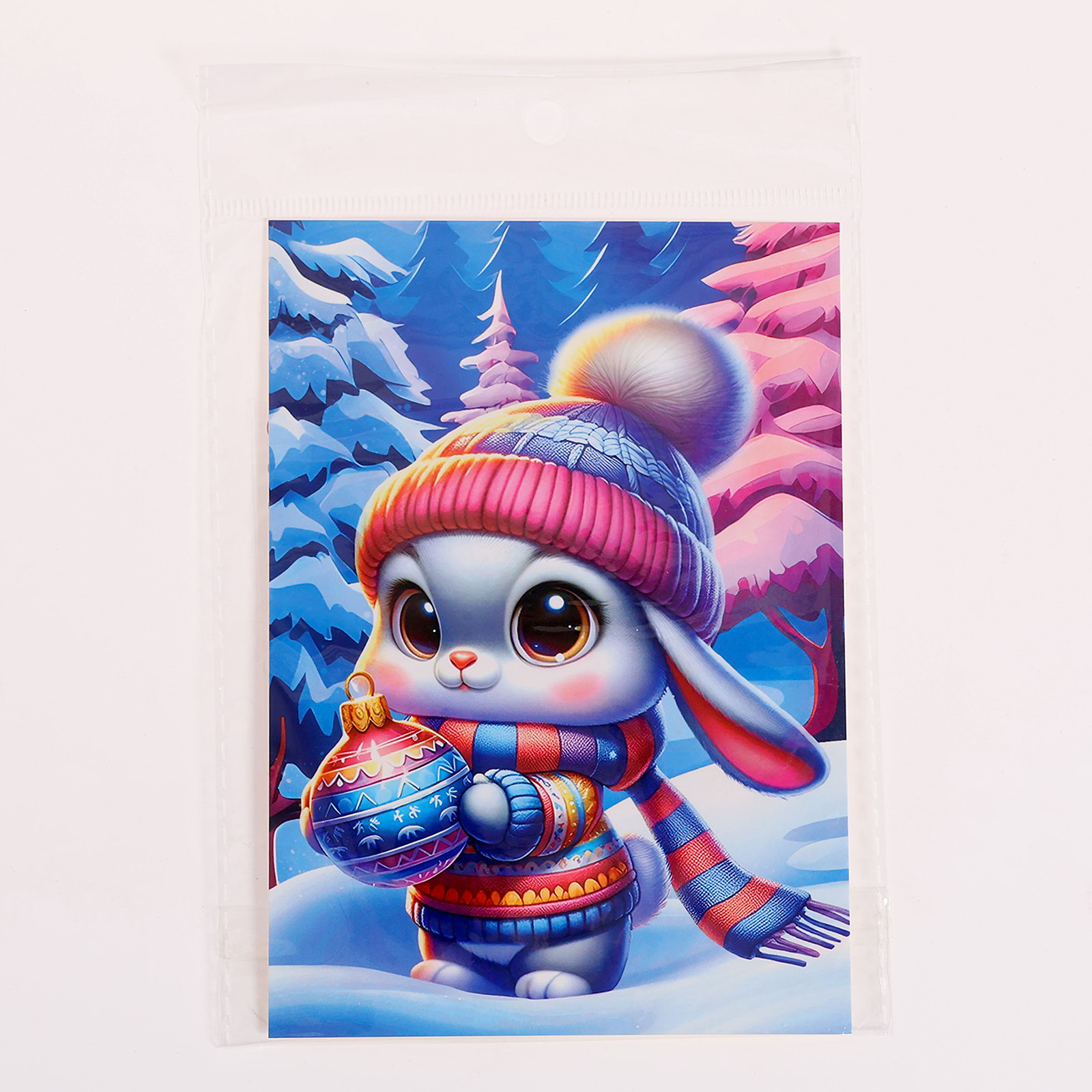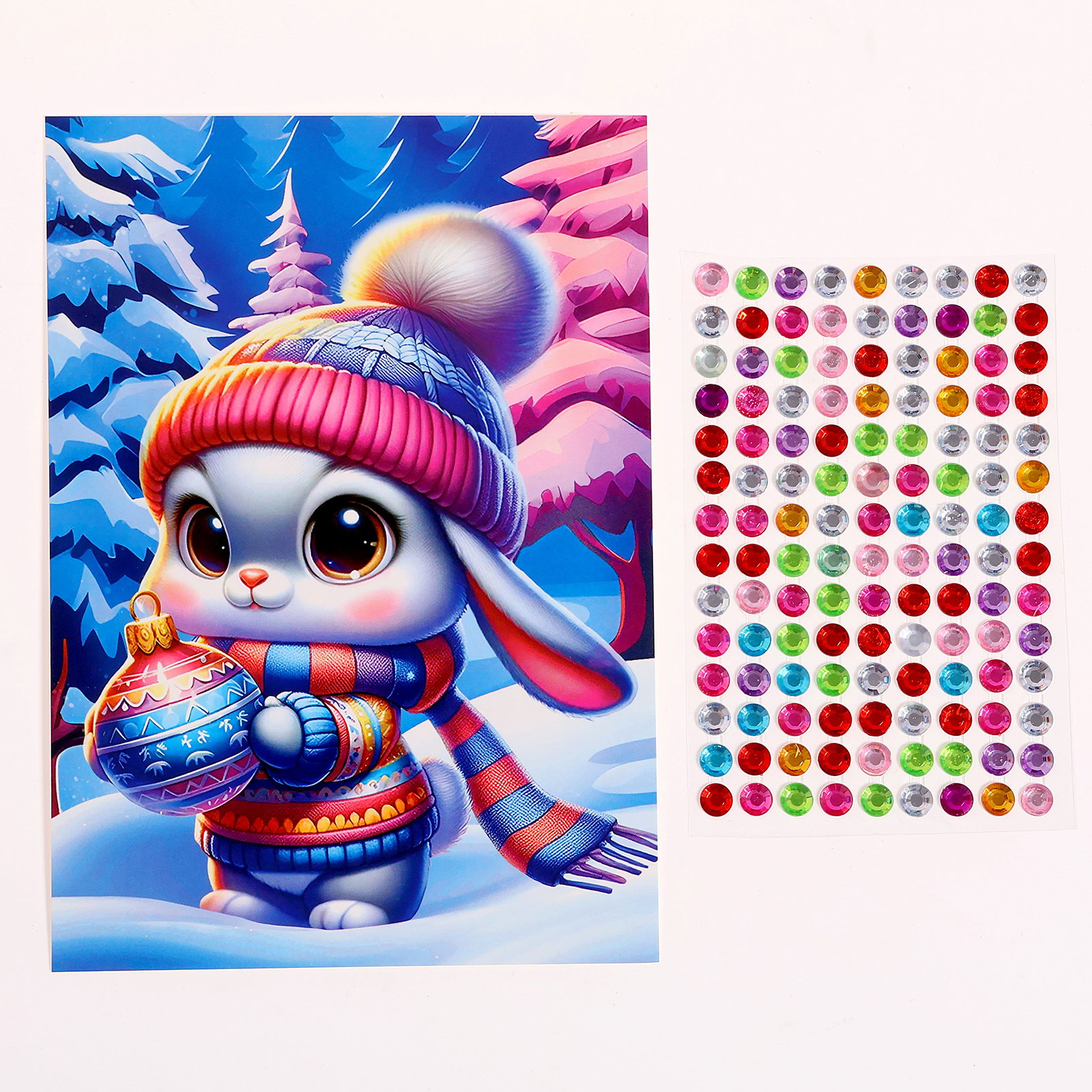 Аппликация стразами на новый год для детей "Зайка", А6, новогодний набор для творчества, 10.5x14.8x0.3 см., Школа талантов, Китай