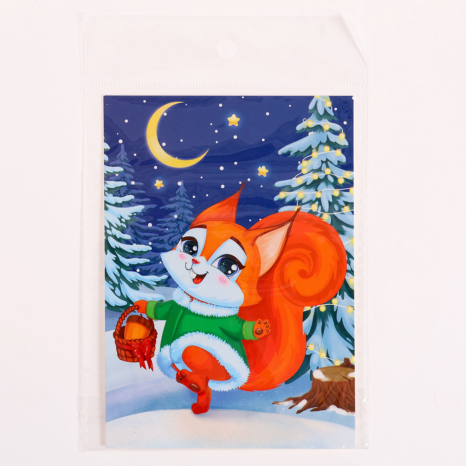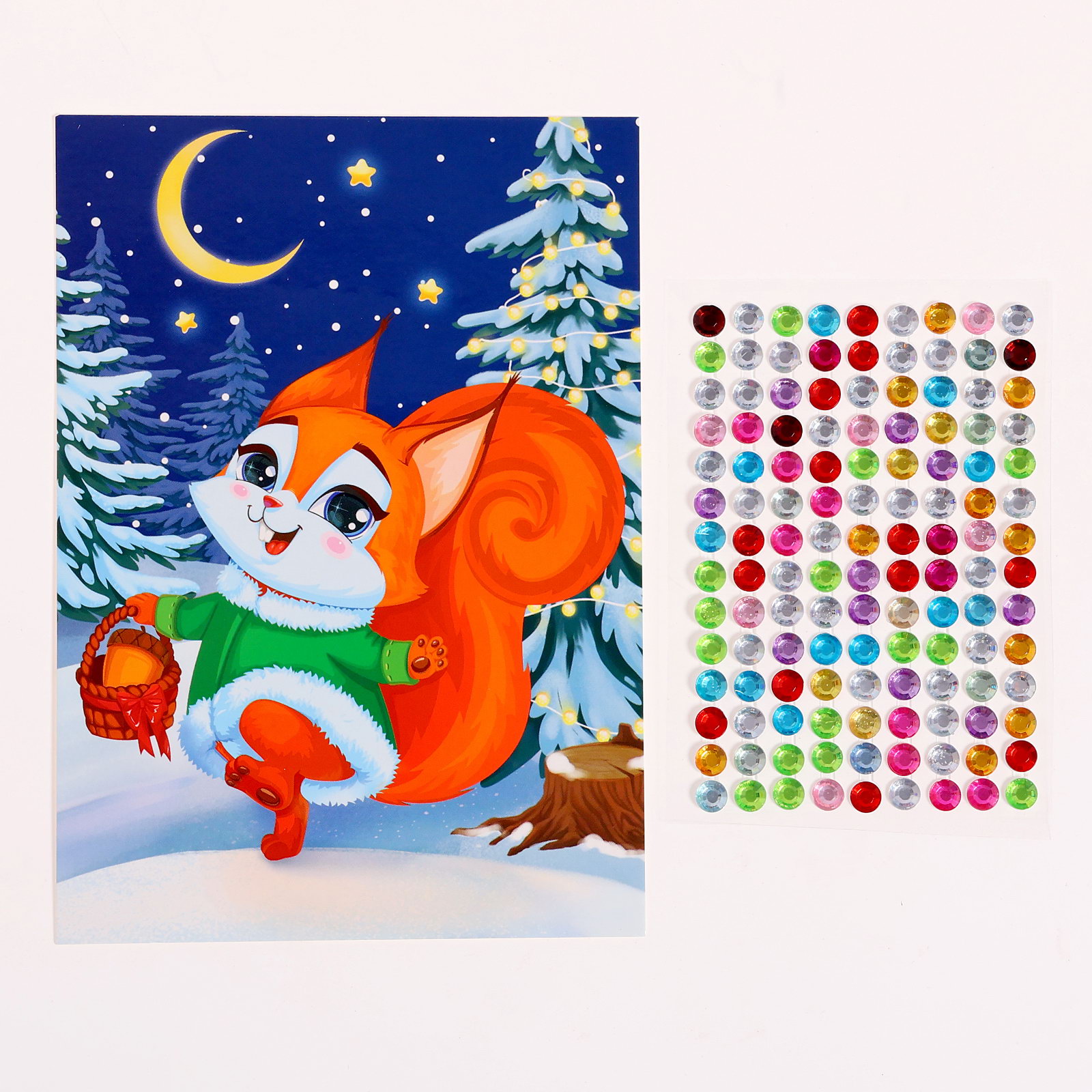 Аппликация стразами на новый год для детей "Белочка", А6, набор для творчества, 10.5x14.8x0.3 см., Школа талантов, Китай