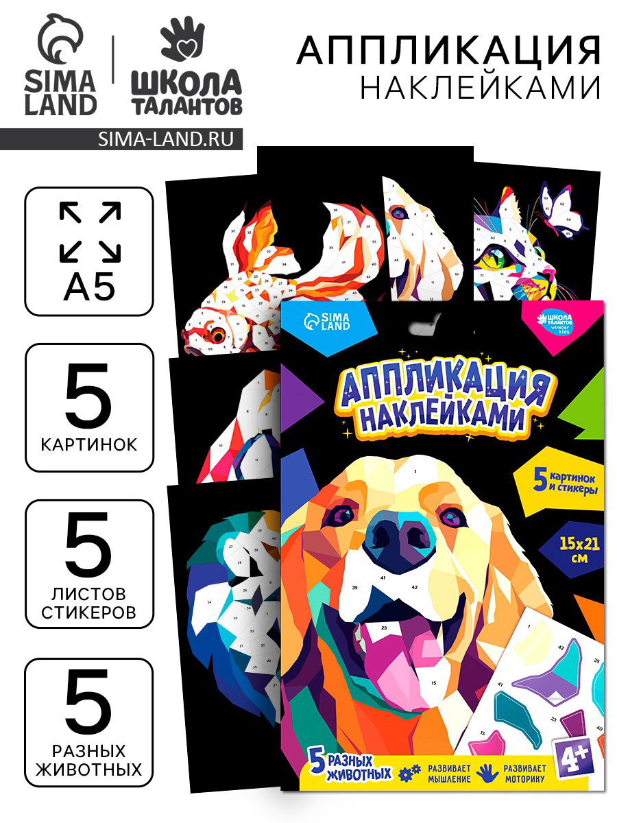 Аппликация наклейками "Яркие животные", 15.2x23x1 см., Школа талантов, Китай