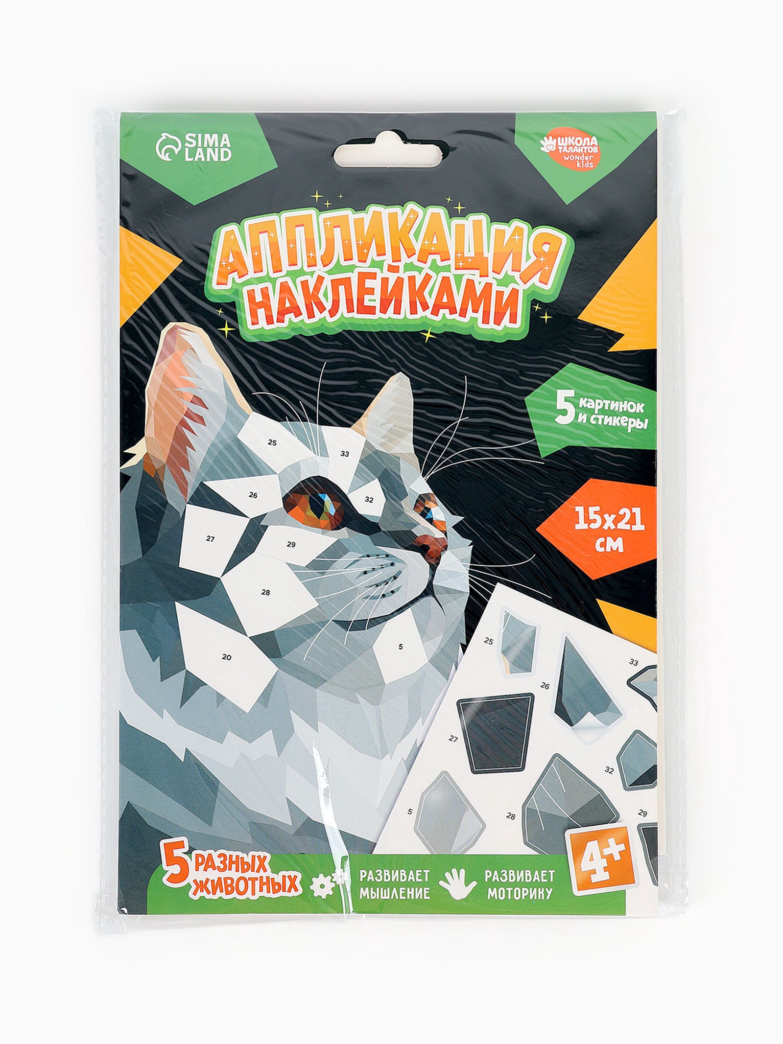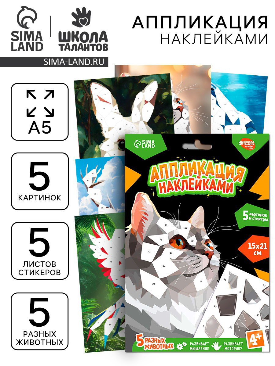 Аппликация наклейками "Животный мир", 15.2x23x1 см., Школа талантов, Китай