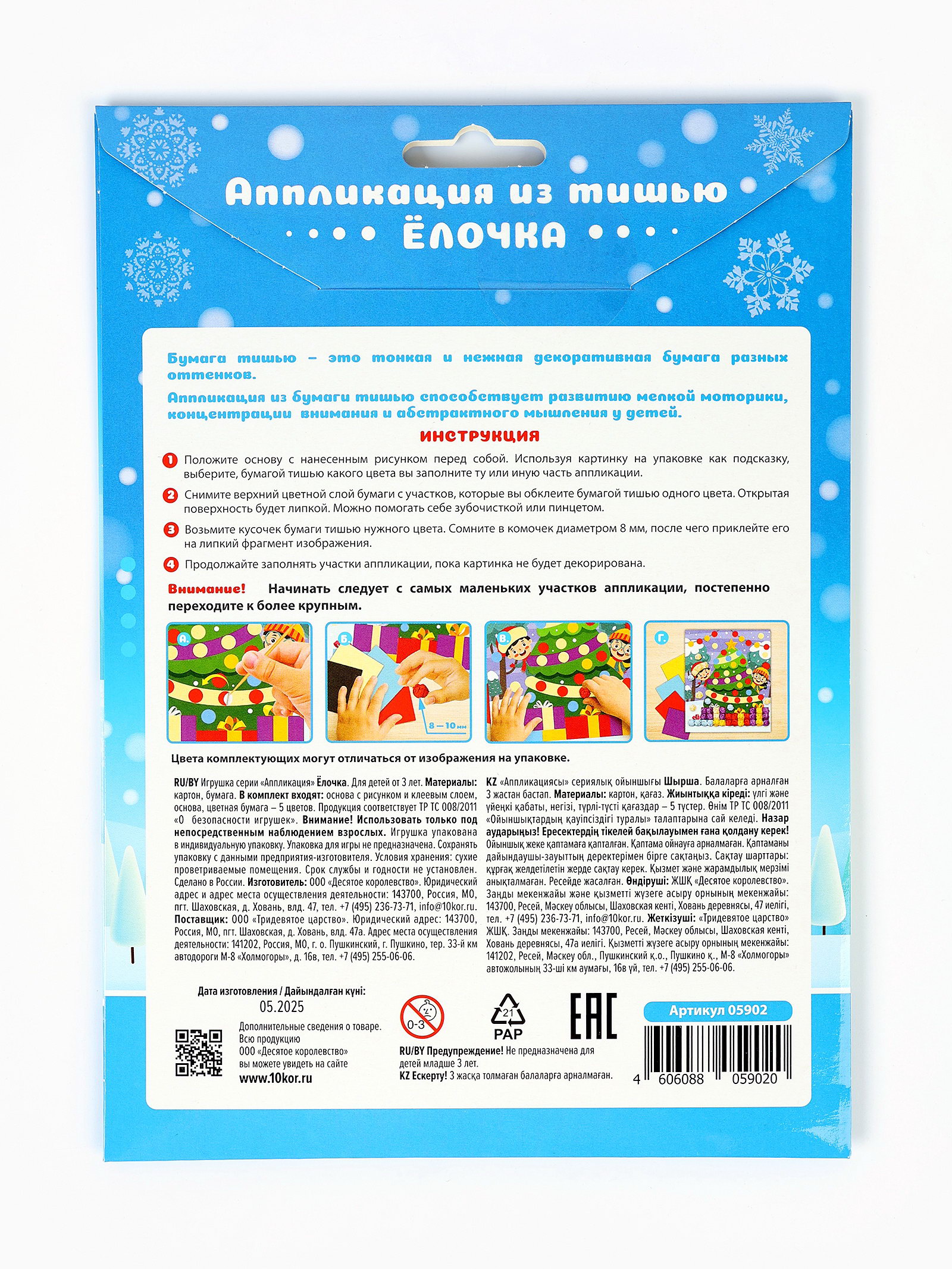 Набор для творчества. Аппликация из тишью. "Ёлочка" размер 138х165, Десятое Королевство, Россия