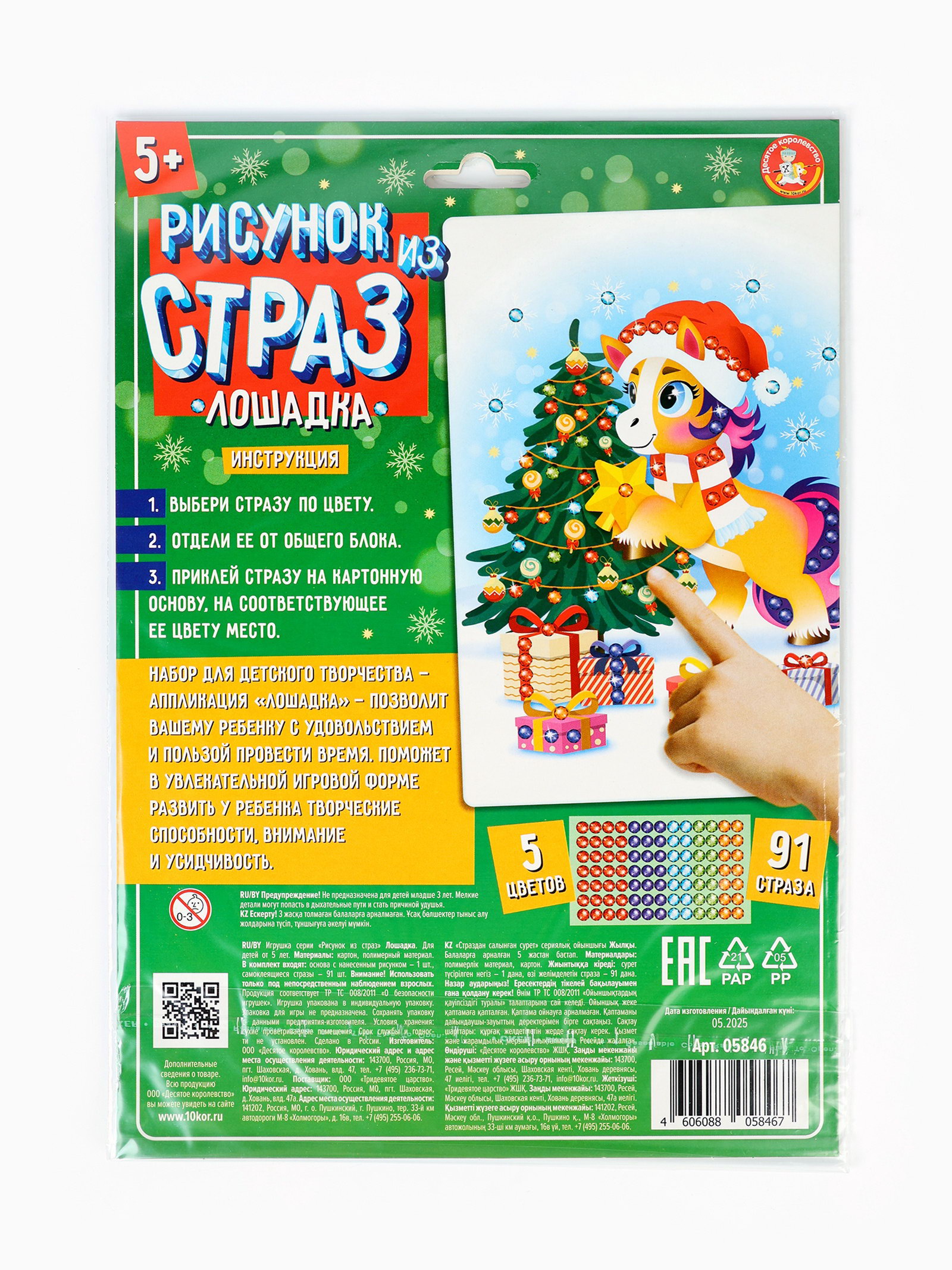 Размер упаковки: 20.5 x 0.3 x 29.5 см. tnved: 9503007000 Температурное ограничение: Нет Тематика праздника: Новый год Возраст: От 5 лет Тематика: Новогодняя Символ года: Символ года 2026 (Лошадь) Материал для аппликации: Стразы | ||