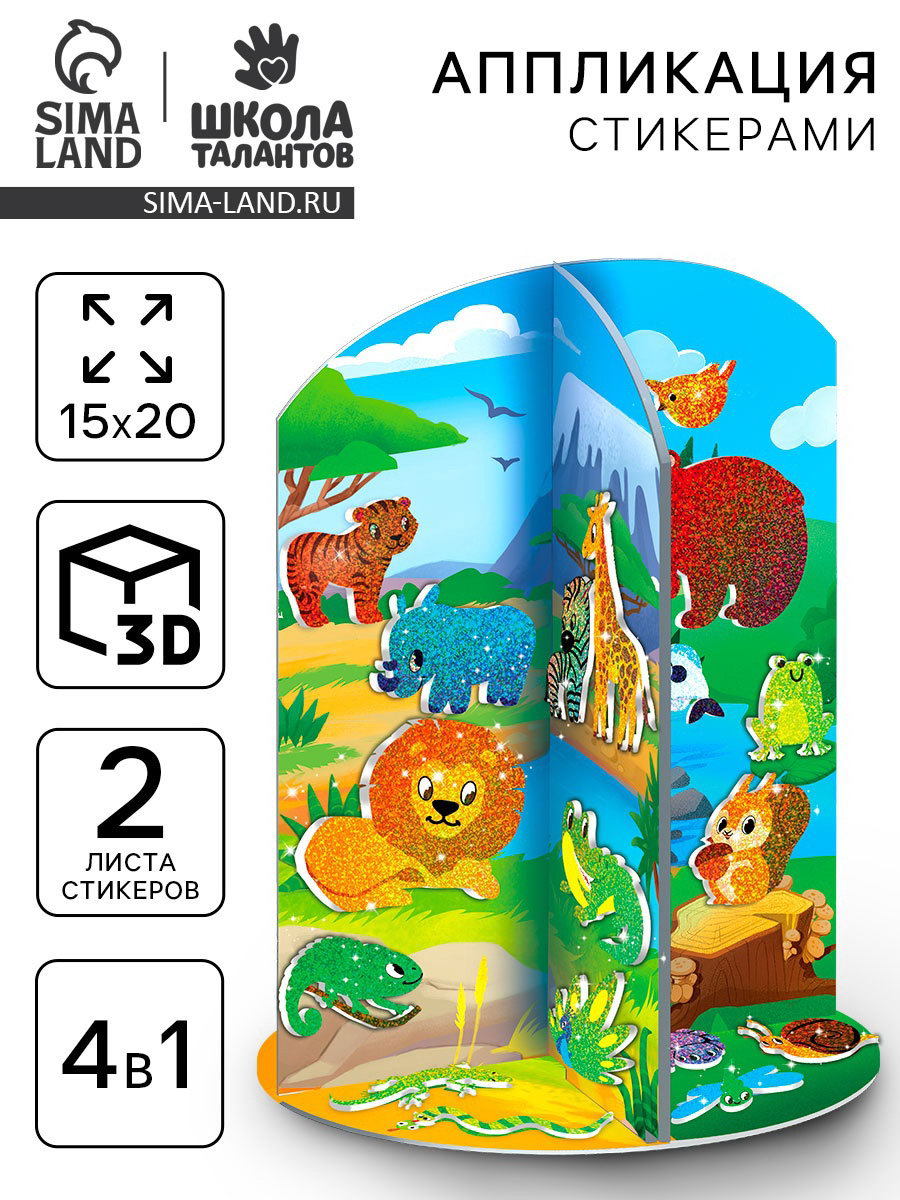 Аппликация стикерами "Кто где живёт?", набор для творчества, 15.2x24x2 см., Школа талантов, Китай
