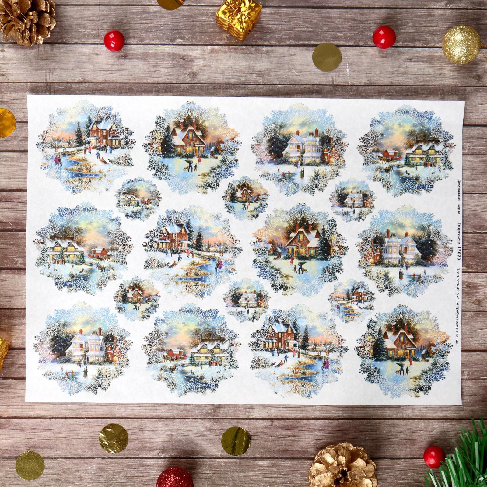 Декупажная карта "Снежная деревня" плотность 45 г/м2, формат А4, Россия