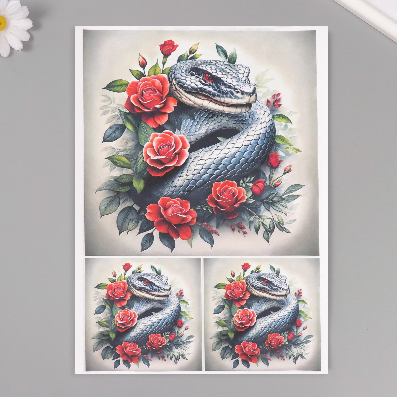 Декупажная карта "Змея в розах", плотность 45 г/?2, формат А4, Россия