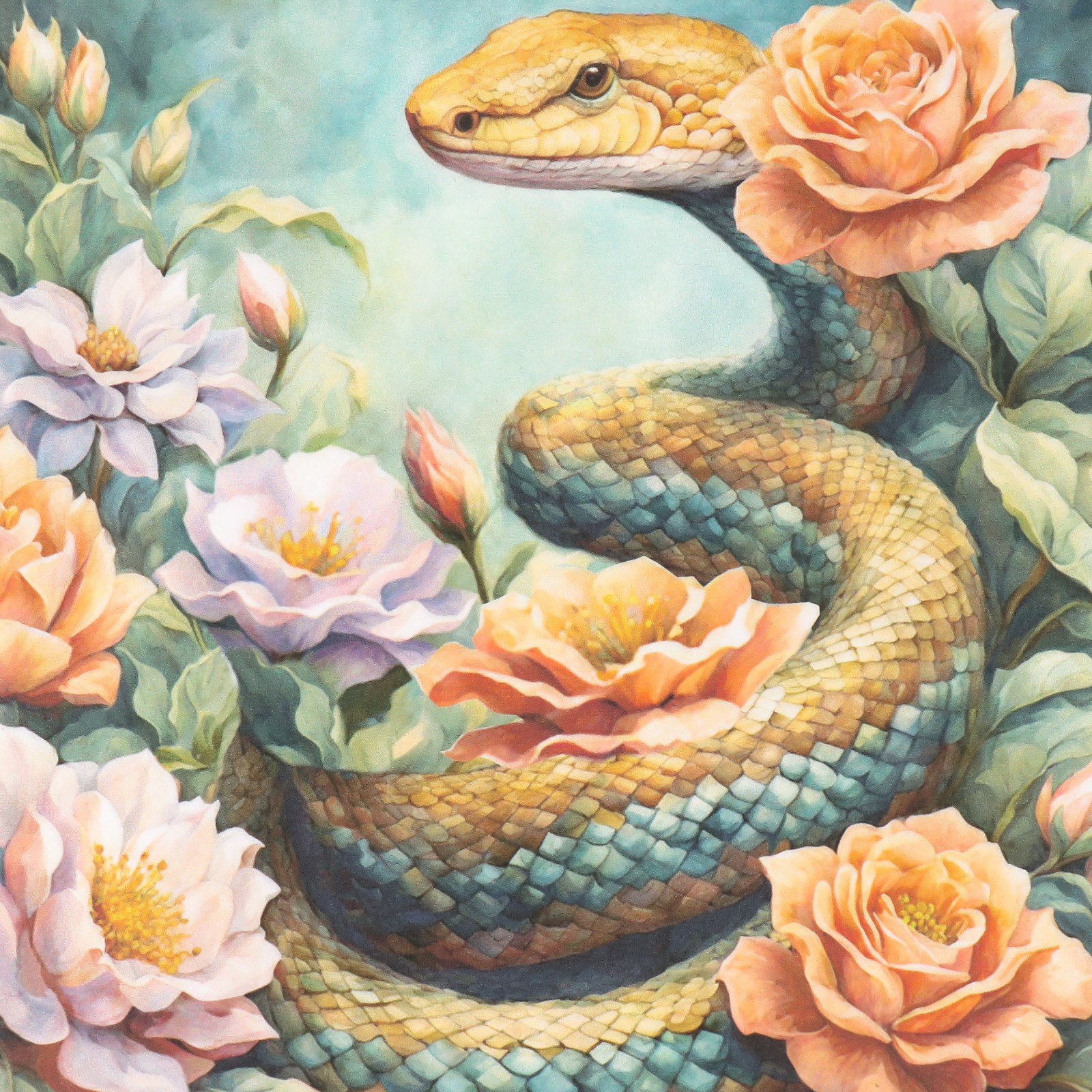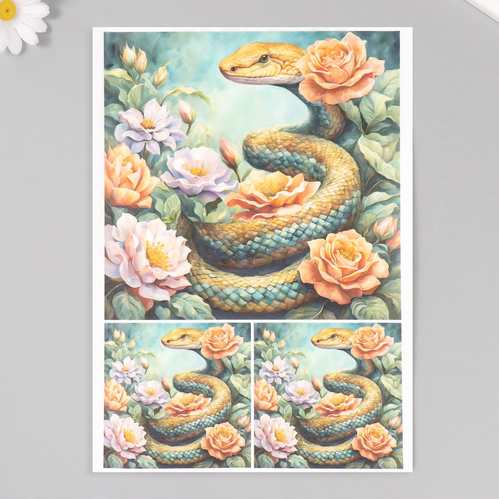 Декупажная карта "Змея в цветочном саду", плотность 45 г/?2, формат А4, Россия