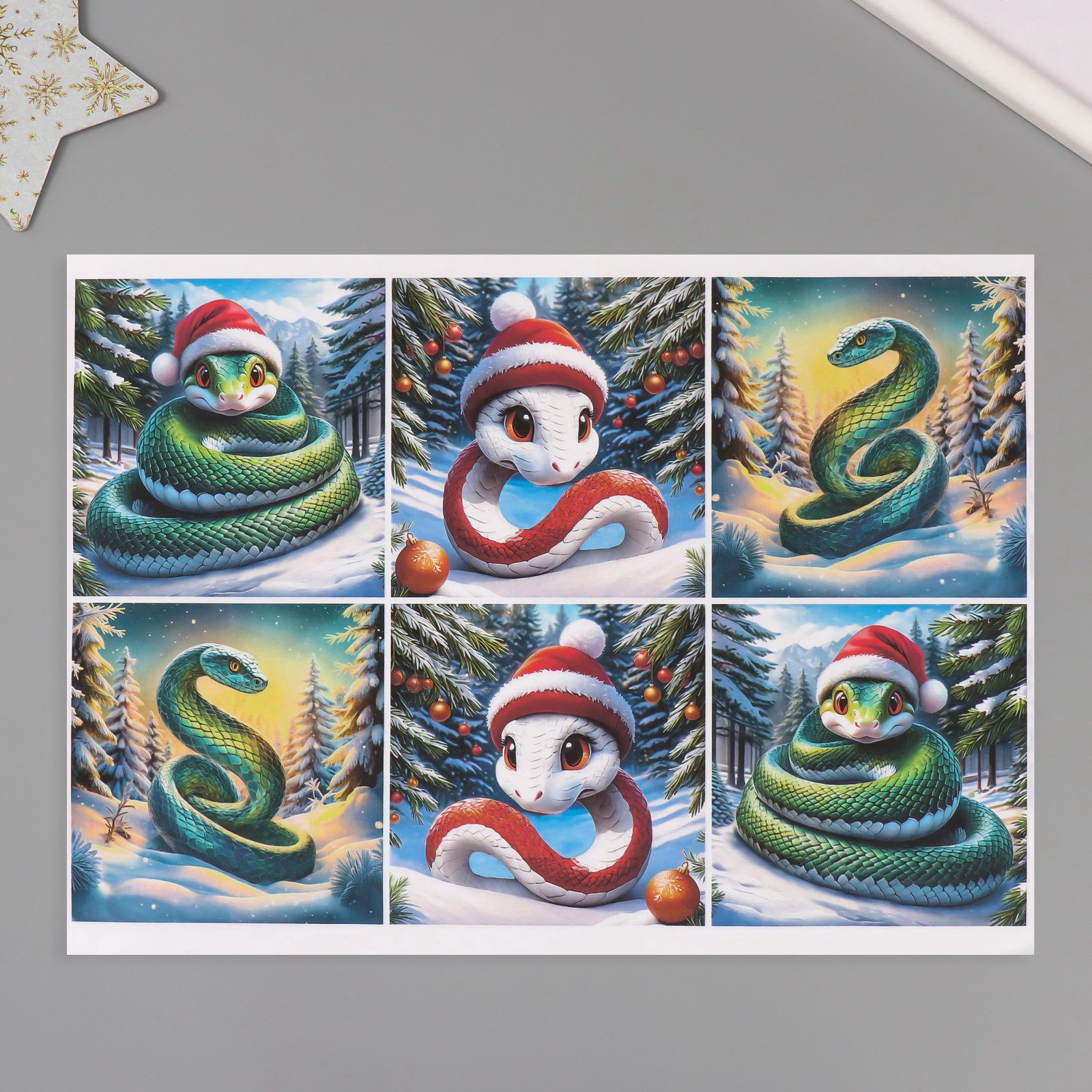 Декупажная карта "Новогодние змеи. Нейросеть", плотность 45 г/?2, формат А4, Россия