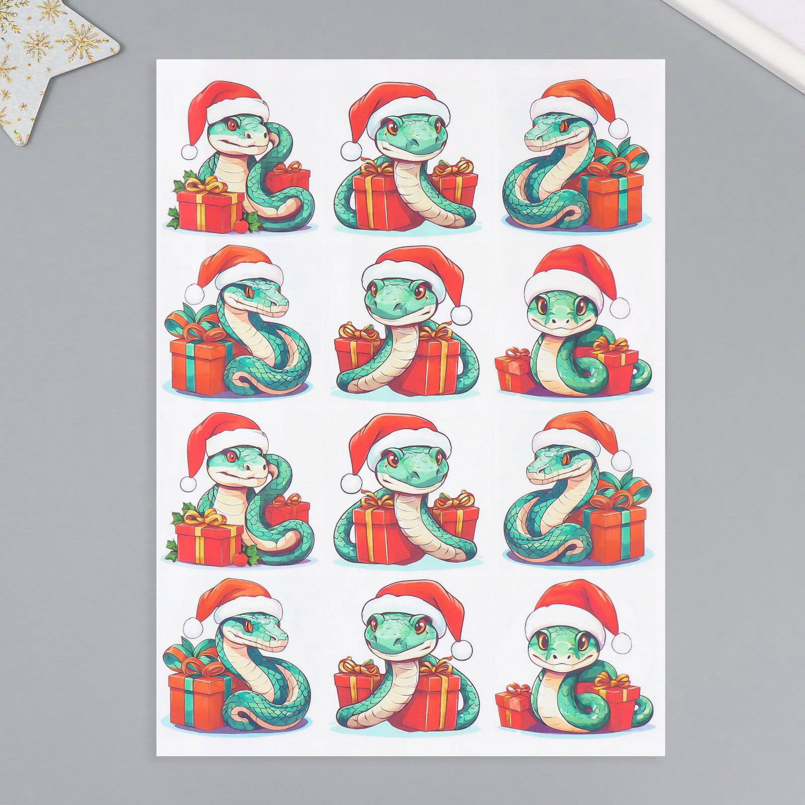 Декупажная карта "Змеи в шапке Деда Мороза", плотность 45 г/?2, формат А4, Россия