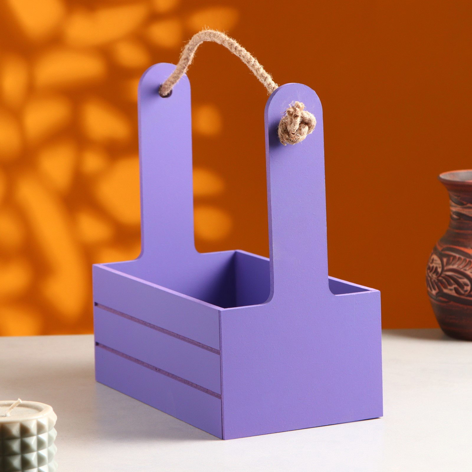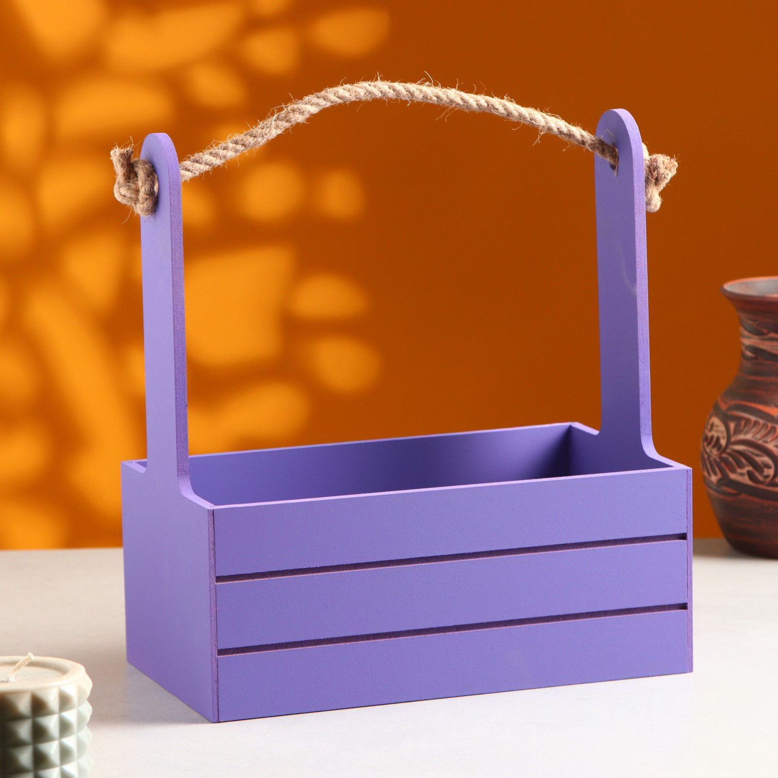 Подарочный ящик "Аром", 25.5x15x30 см, деревянный, ручка - канат, фиолетовый, Дарим Красиво, Россия