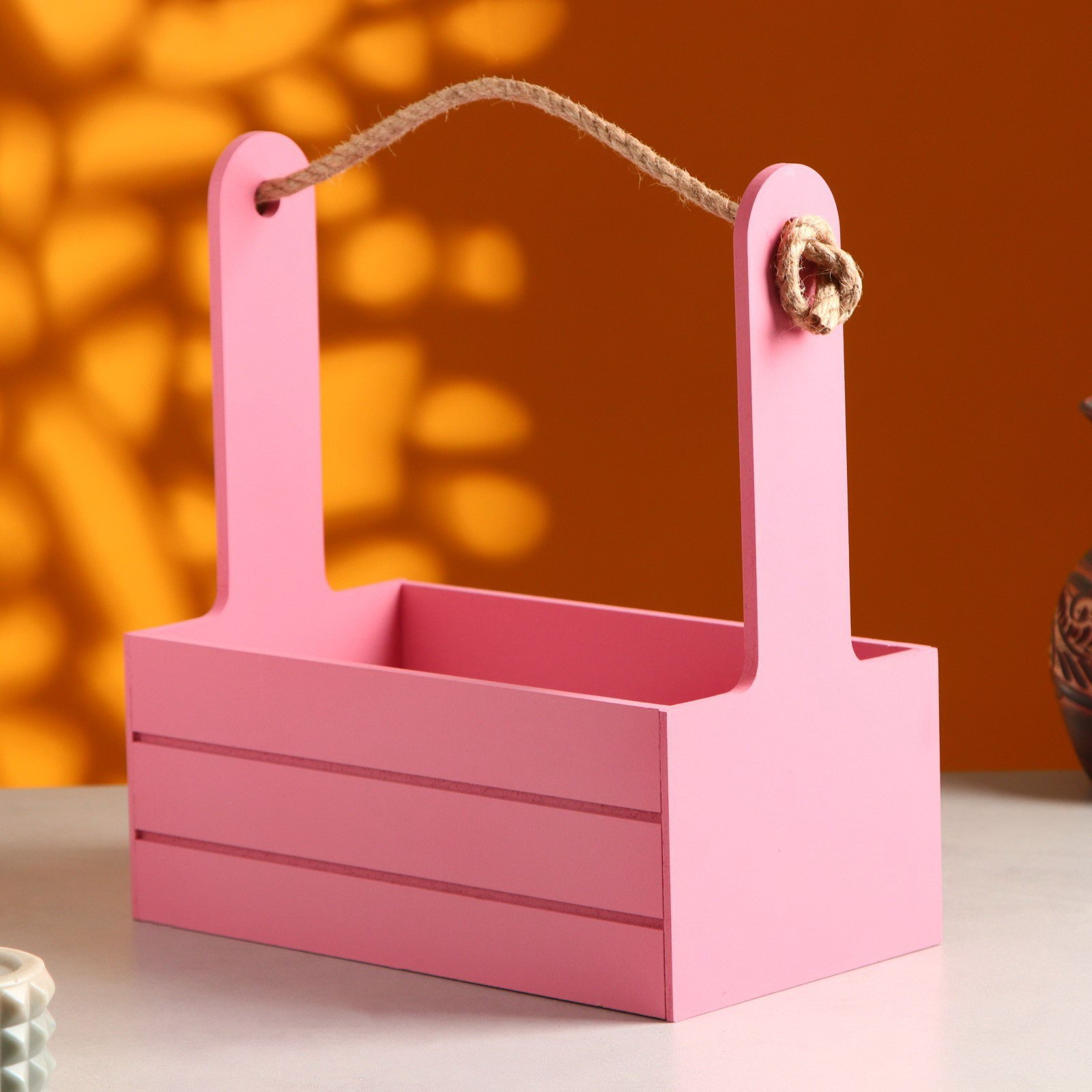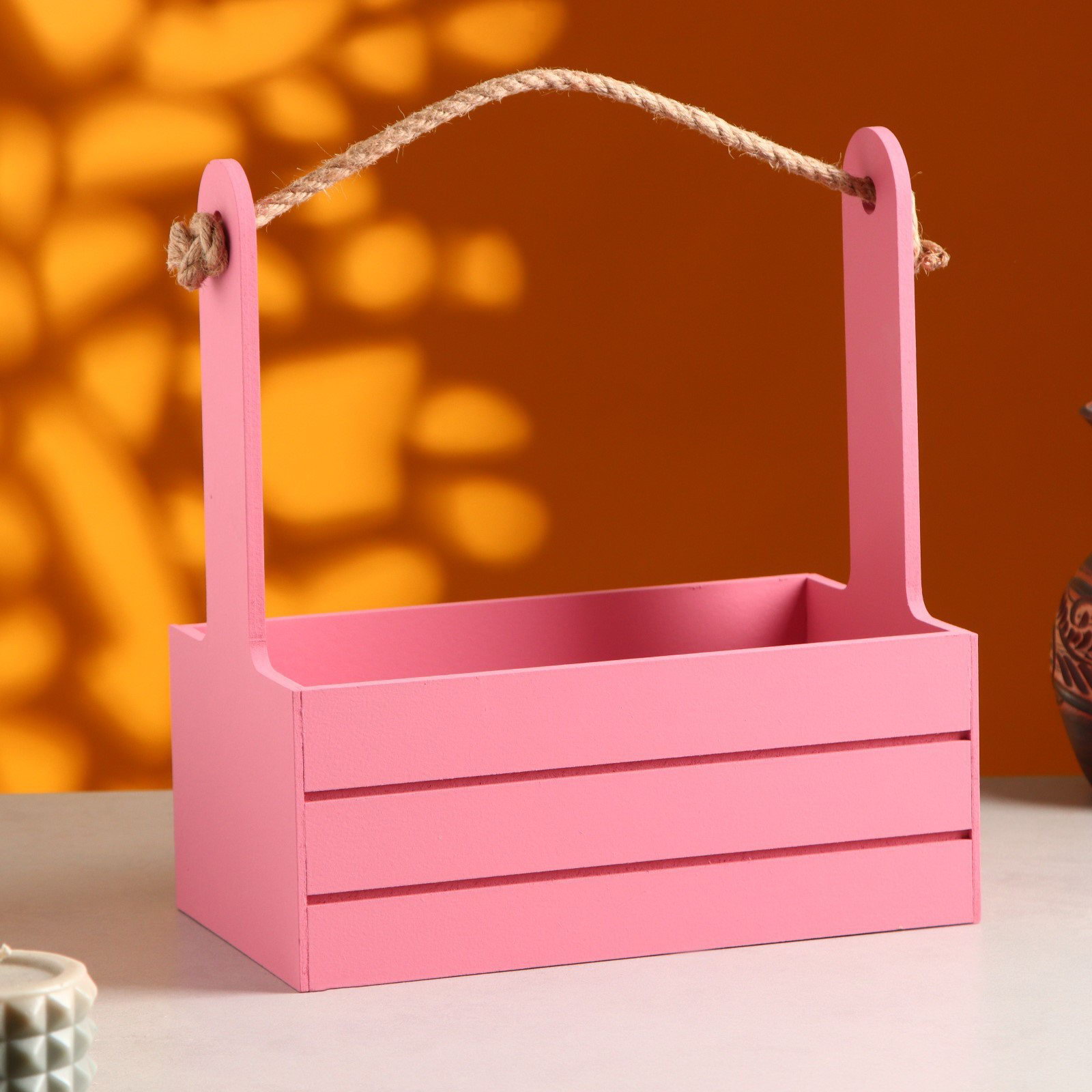 Подарочный ящик "Аром", 25.5x15x30 см, деревянный, ручка - канат, розовый, Дарим Красиво, Россия