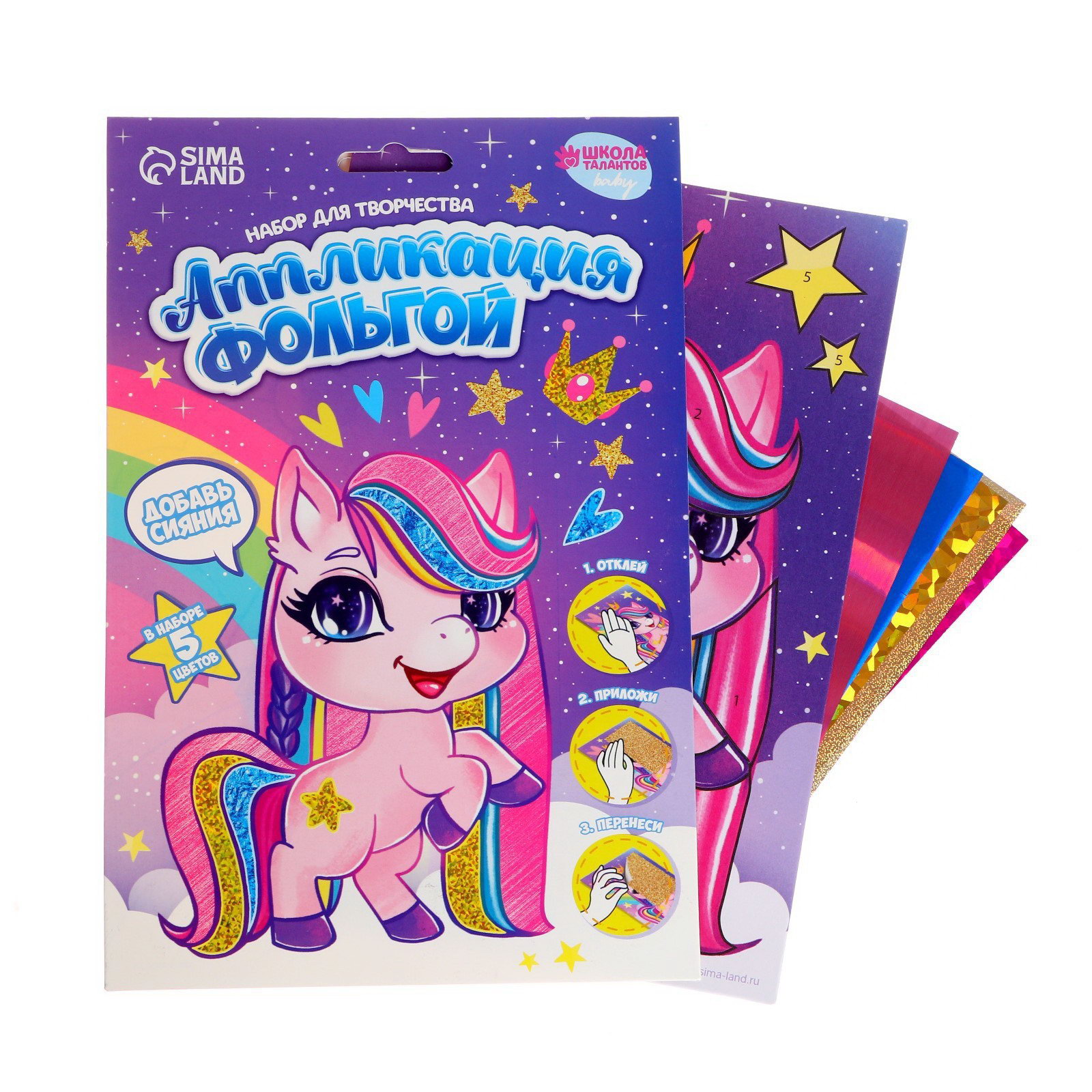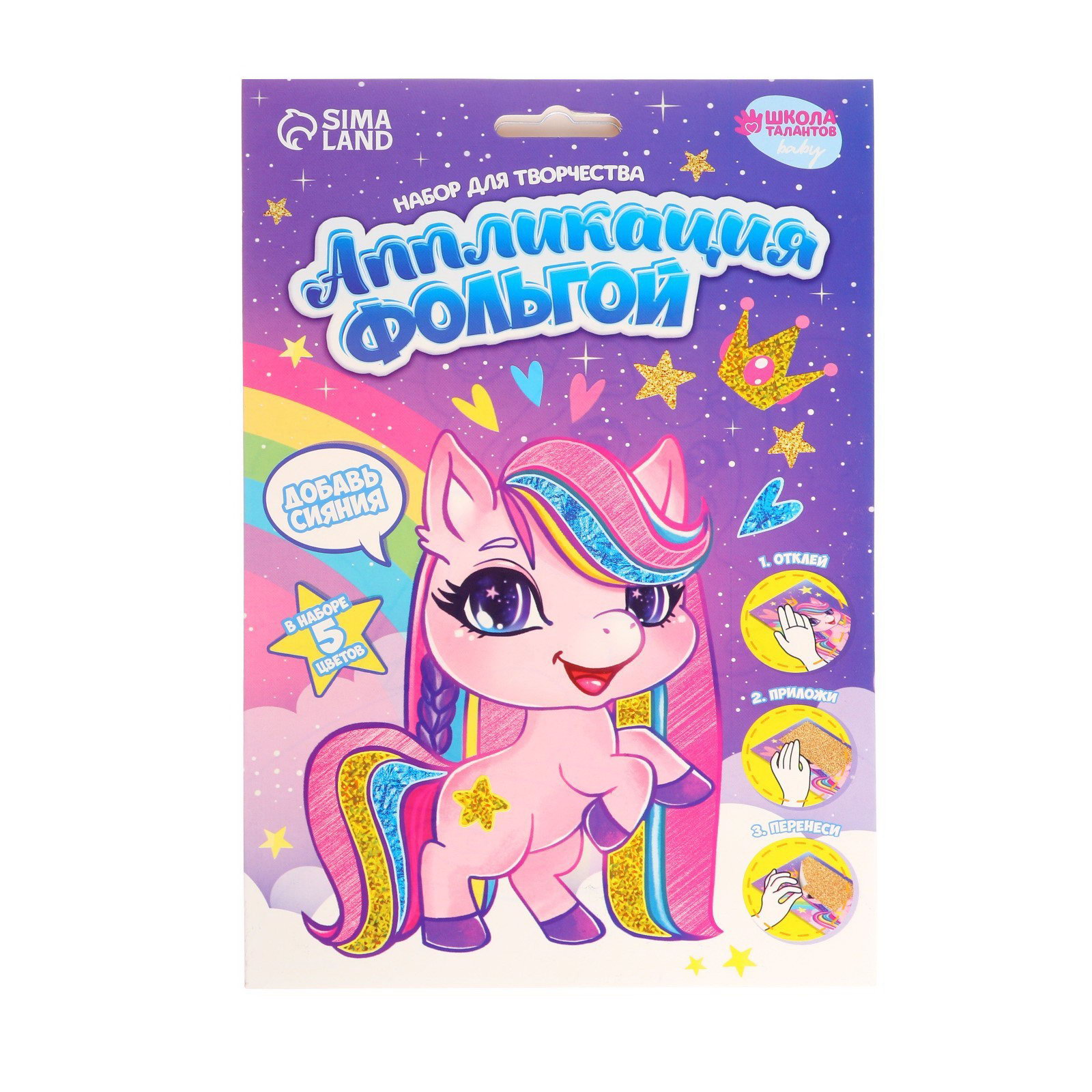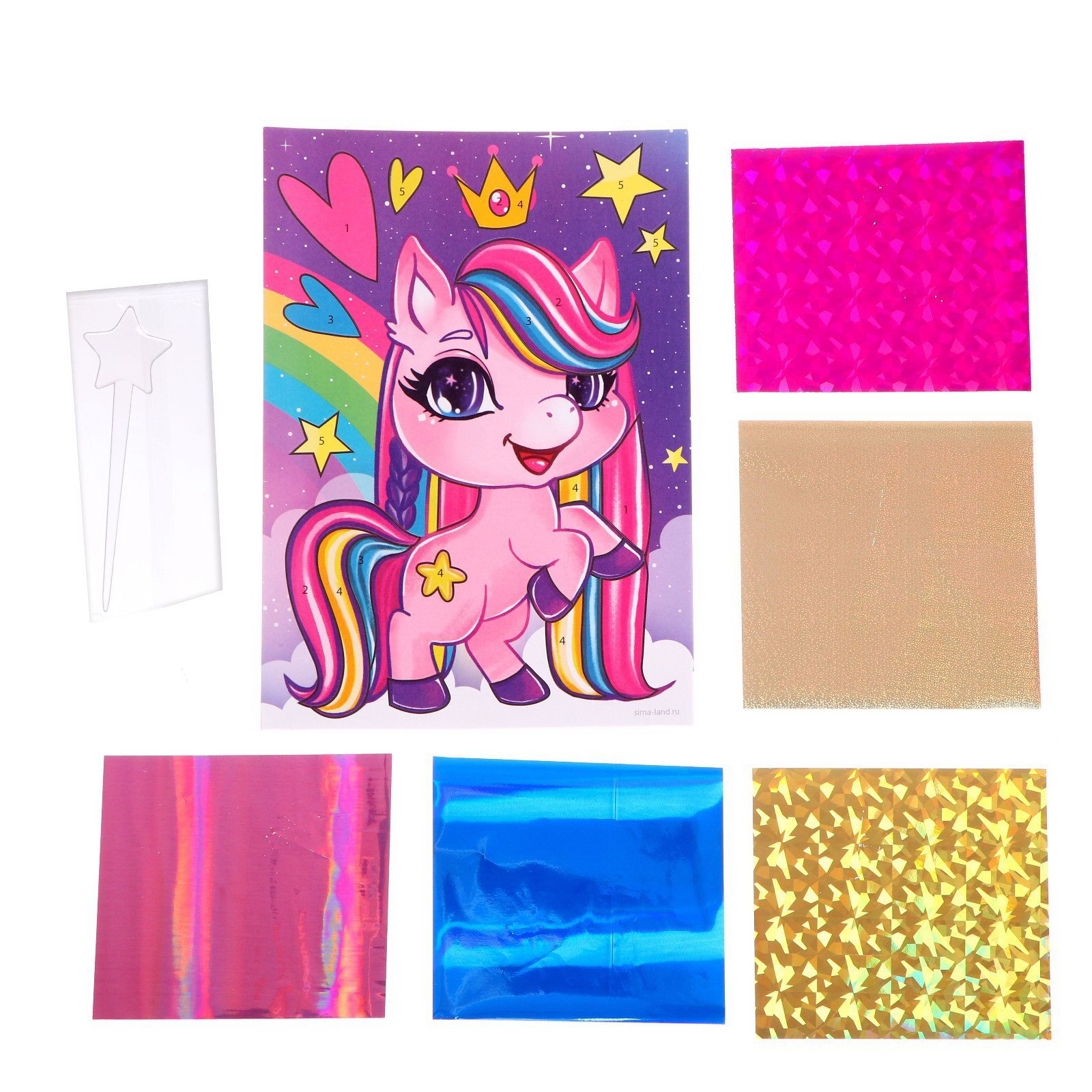 Аппликация фольгой "Розовая пони", 15.5x23x0.5 см., Школа талантов, Китай