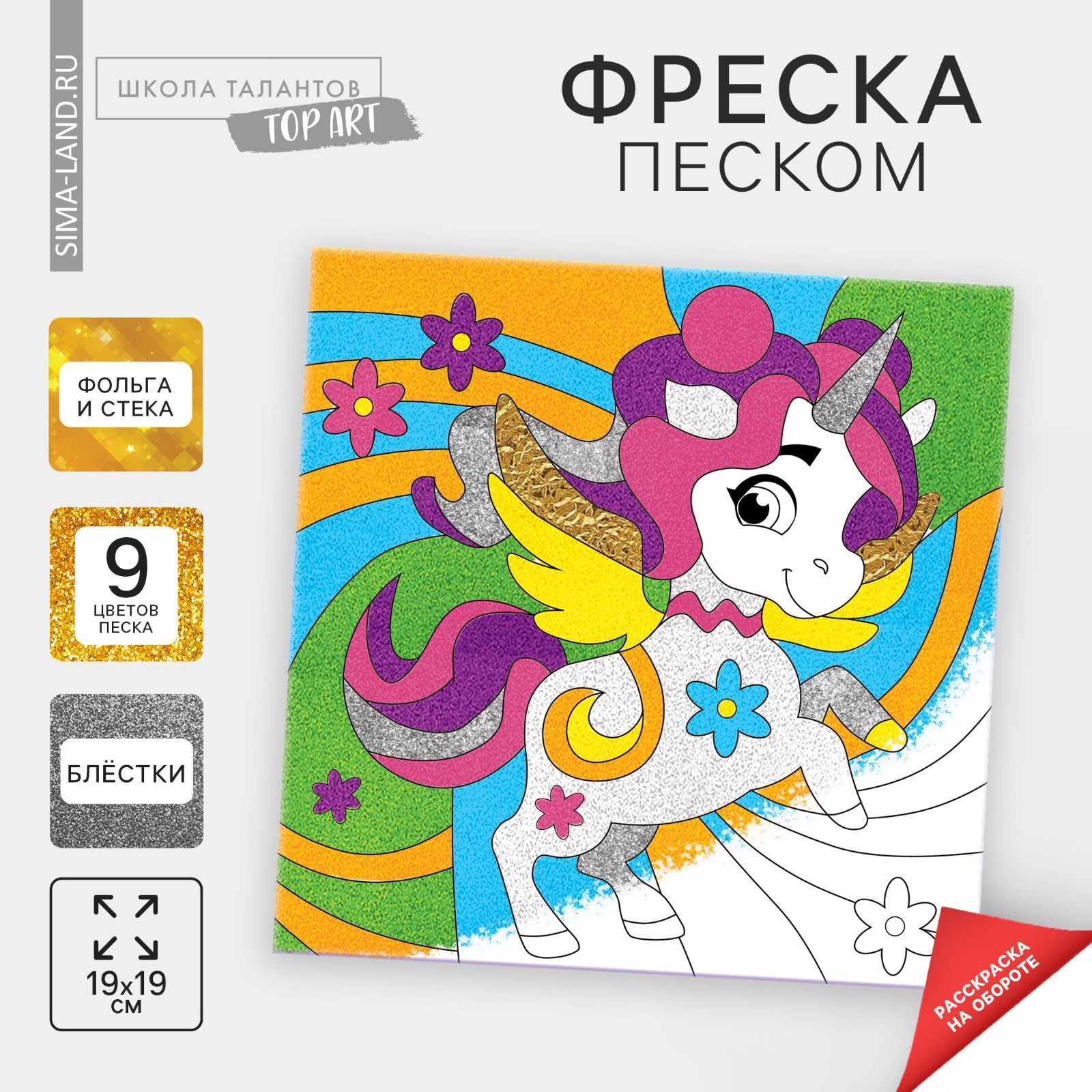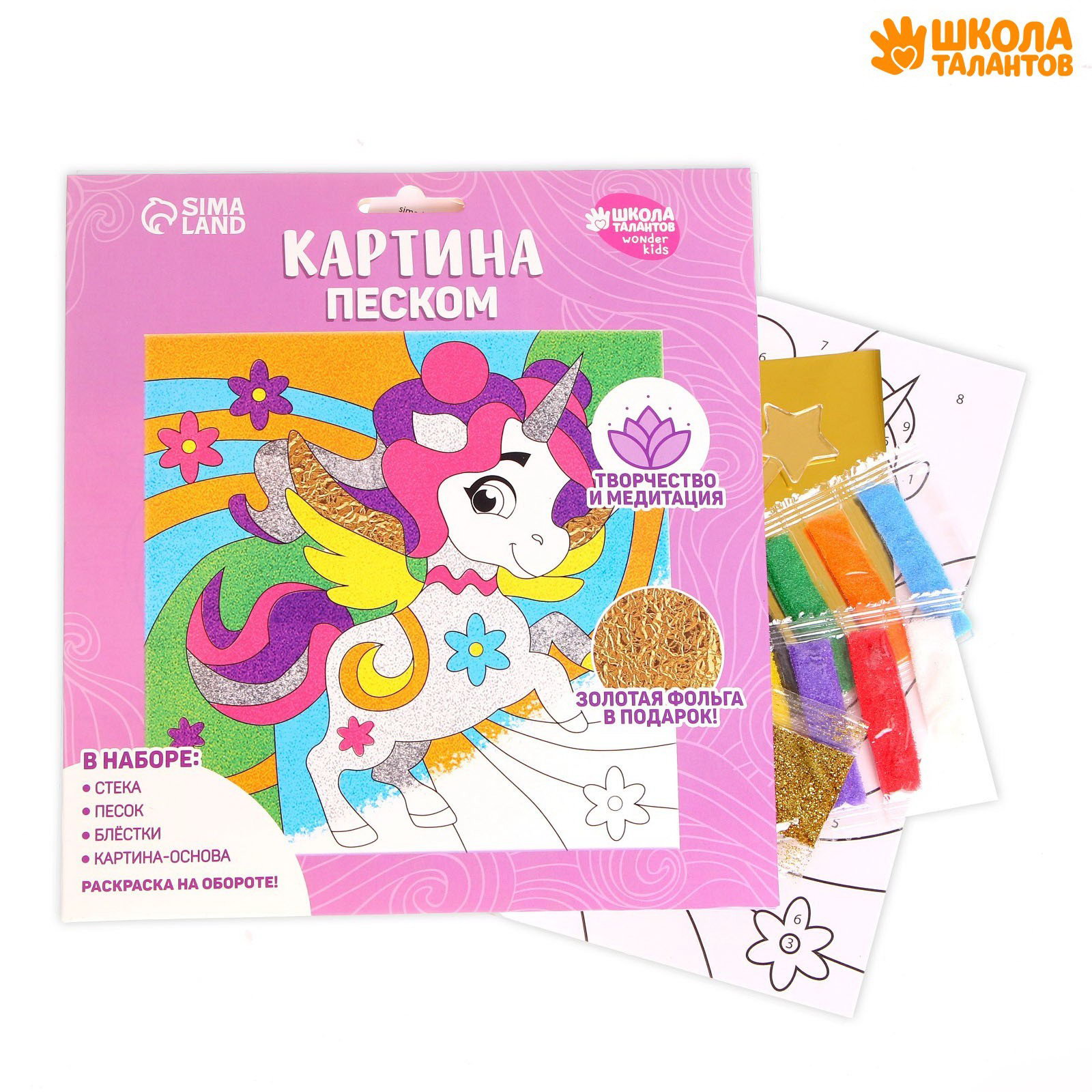 Набор для творчества. Картина песком "Полёт единорога", 0.5x20x23 см., Школа талантов, Китай