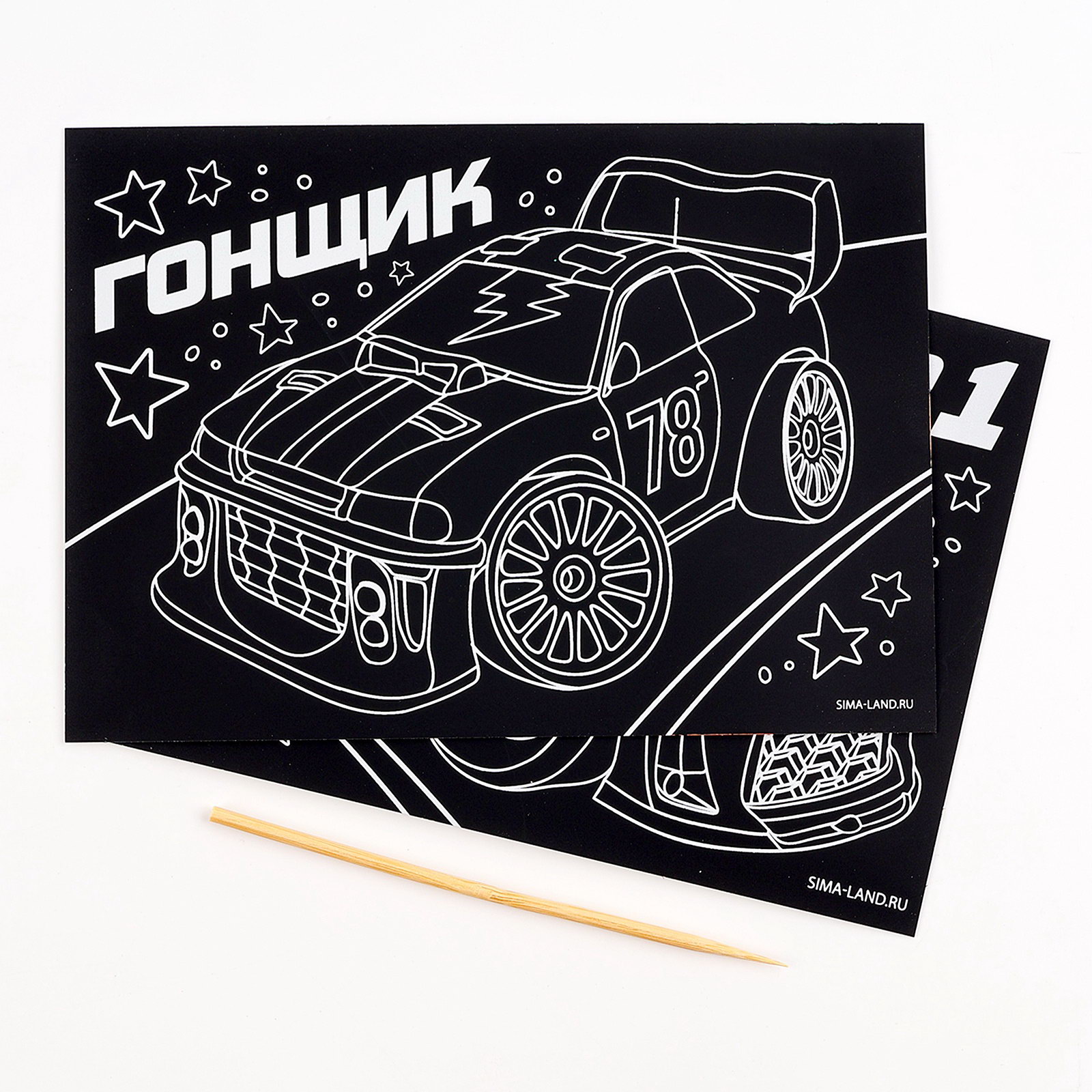 Гравюра детская "Гонщик", набор 2 шт, 10 x 15 см, 10.5x14.8x0.2 см., Школа талантов, Китай