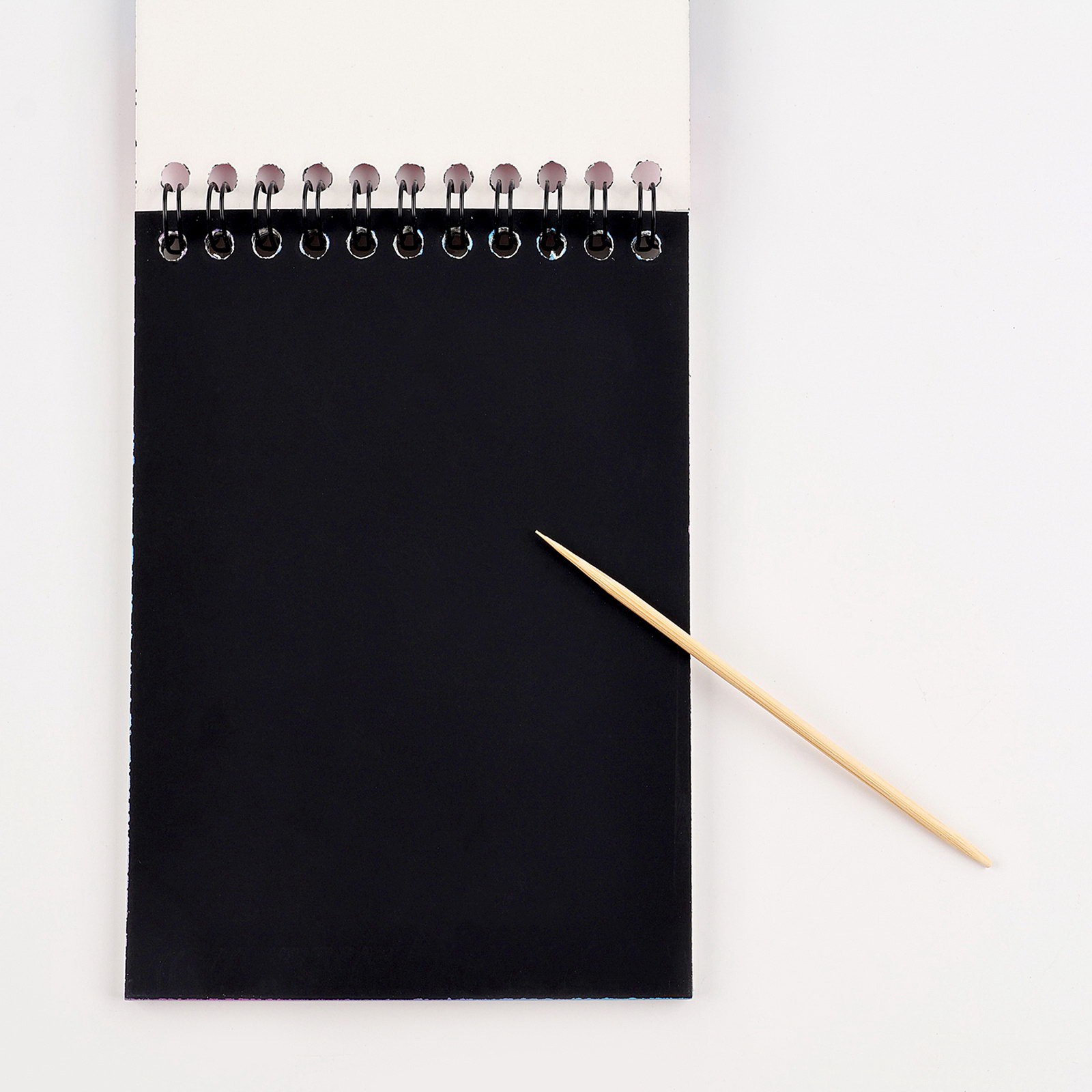 Размер упаковки: 10.5 x 0.5 x 14.5 см. Для кого: Унисекс Возраст: От 3 лет Особенности гравюры: Разноцветное основание tnved: 4911990000 Вид гравюры: Гравюры-блокноты Формат: А6 Тип скрепления: На гребне/спирали Количество листов: 10 Блокнот с чёрными листами вам неинтересен? Но не торопитесь уходить, это волшебный блокнот! Под чёрным фоном скрывается сияющее покрытие, которое сделает ваши рисунки сказочными. С помощью штихеля нарисуйте что-нибудь на листе (штихель будет соскребать верхний тёмный слой, открывая сияющий). Блокнот-гравюра из 10 листов - это безграничное поле для фантазии! Создавайте узоры, рисунки, надписи и делитесь своими шедеврами с друзьями и близкими. | ||